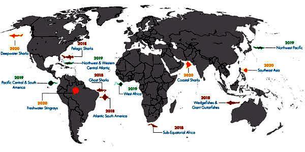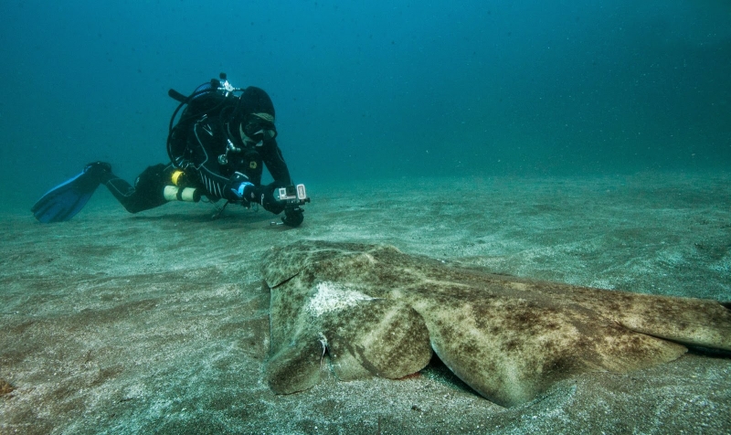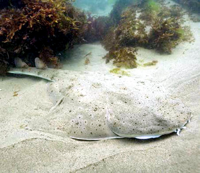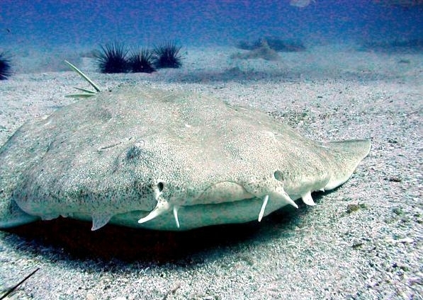 * The Angel Shark is migratory and is observed to prefer the northern waters during the summer months. Larger sharks like the Great White, Tiger & Oceanic White-tip will prey upon the Angel Shark.