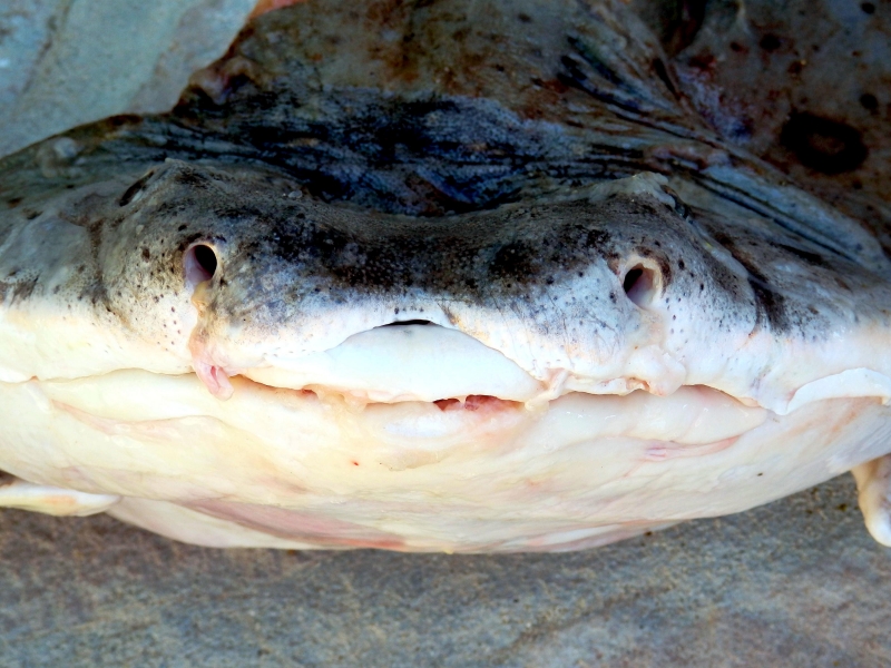 * Angel Sharks don’t resemble other sharks. They look more like skates or rays, with their pectoral fins spread out on either side like angel wings. Their physical anatomy is the same as a shark, but somehow managed to get flattened somewhere down the evolutionary line.
