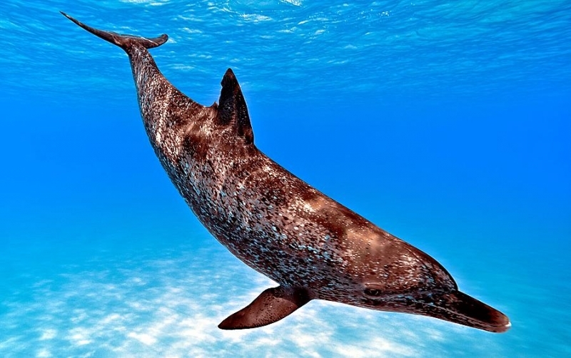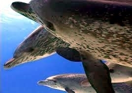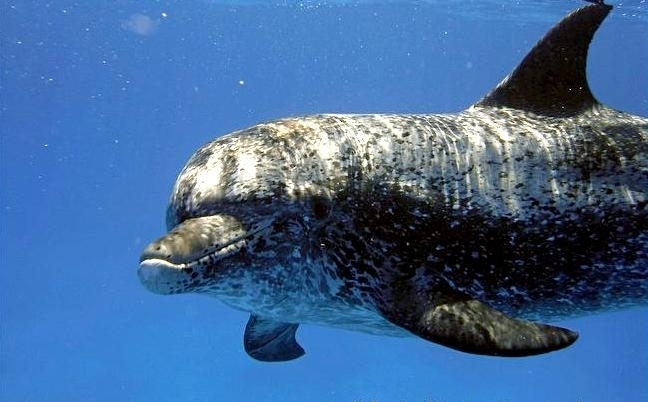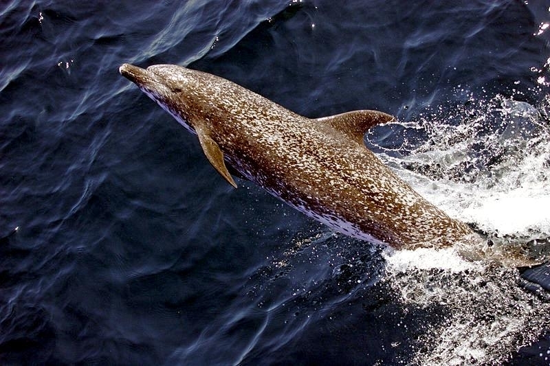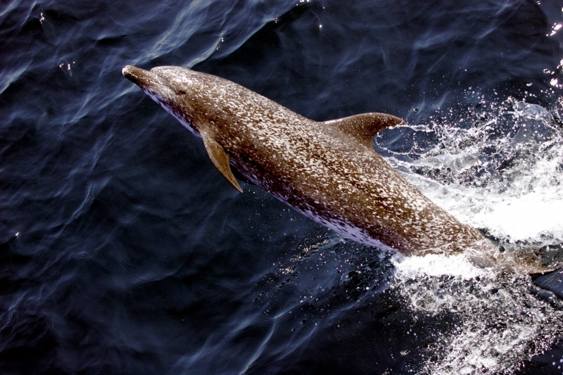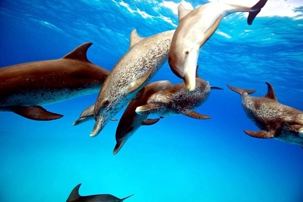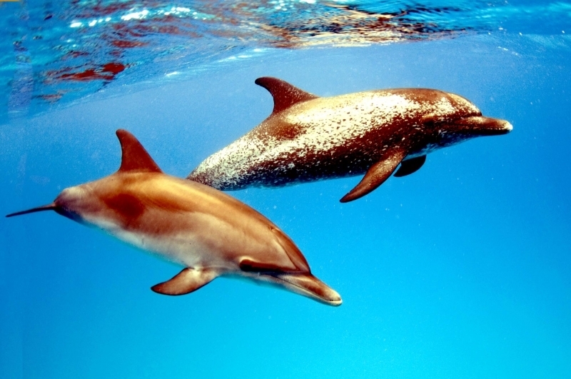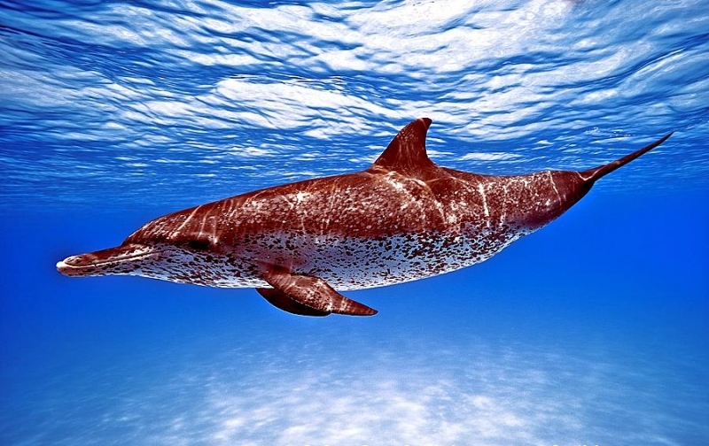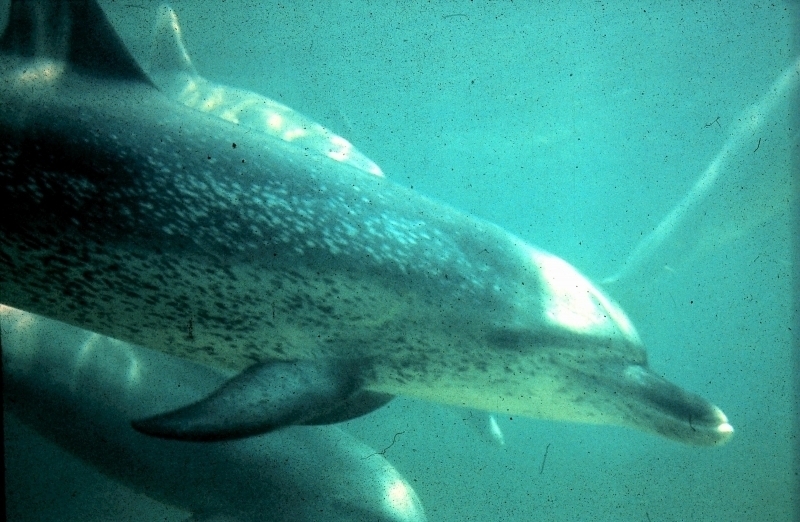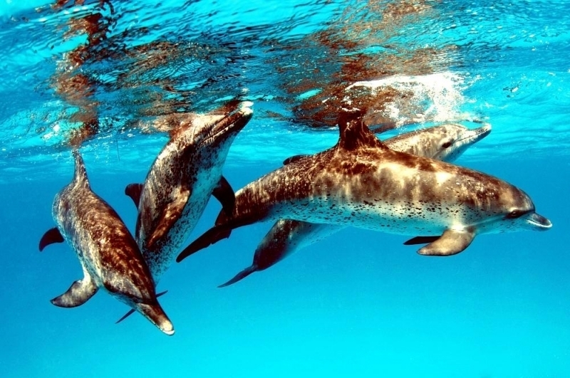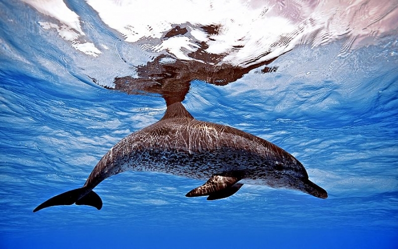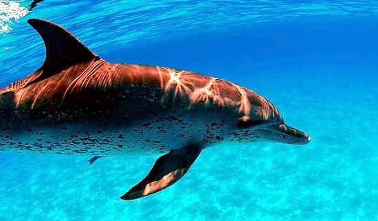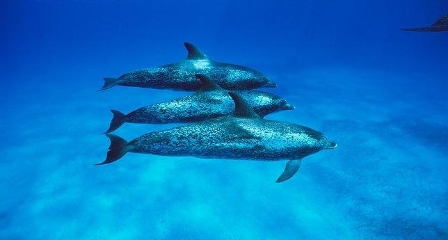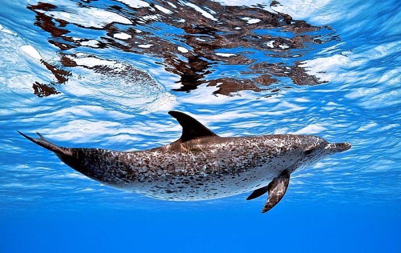 Atlantic Spotted Dolphins are agile swimmers known to flip & leap from the water. They communicate using whistles that are distinguishable among individuals by humans. They also communicate with clicking and other sounds. This communication is sometimes used when the animal is in distress. The Atlantic Spotted Dolphin like other dolphin species, will support wounded or sick animals in the water until they recover or die. Atlantic Spotted Dolphins are found in the tropical & temperate waters of the Atlantic Ocean. They inhabit the continental shelf along the southeastern and Gulf coasts of the U.S. In the Bahamas however, the Atlantic Spotted Dolphin is found in the shallow waters over sand flats. Atlantic Spotted Dolphins feed on invertebrates like squid & octopuses as well as a wide range of fishes.