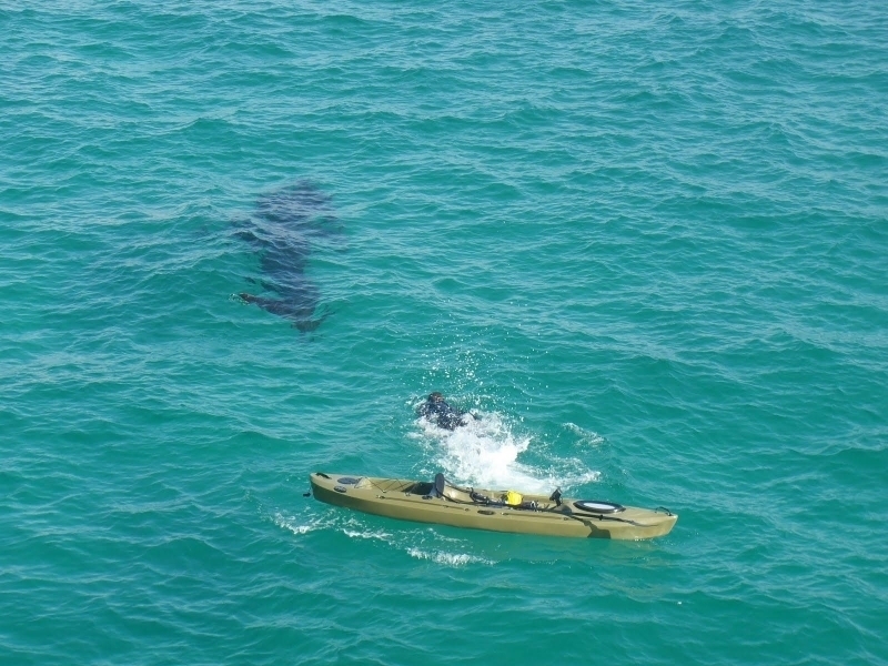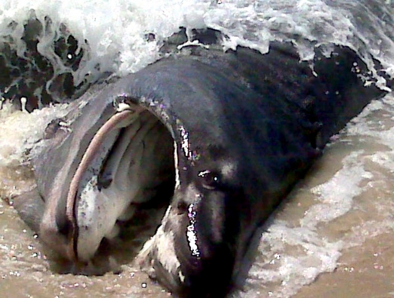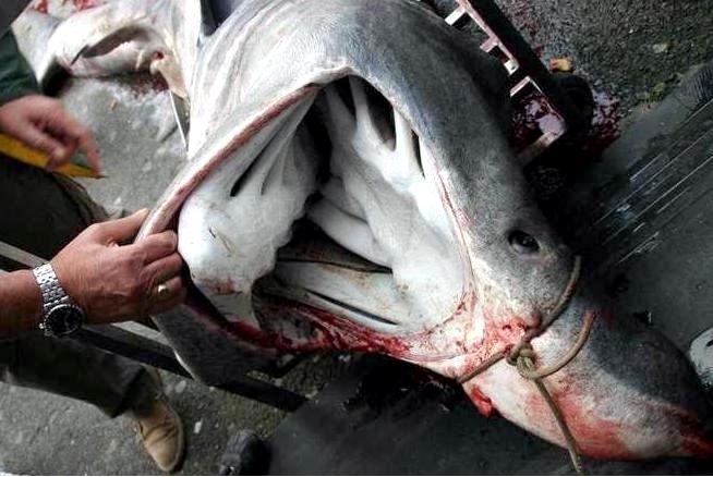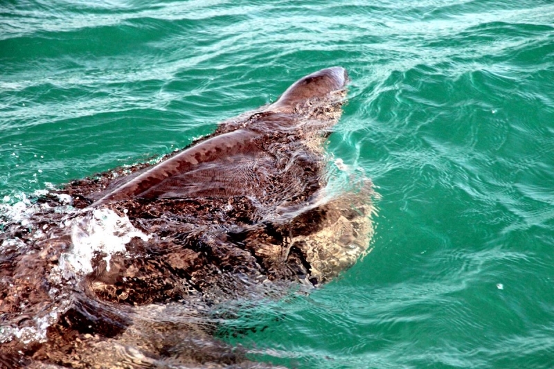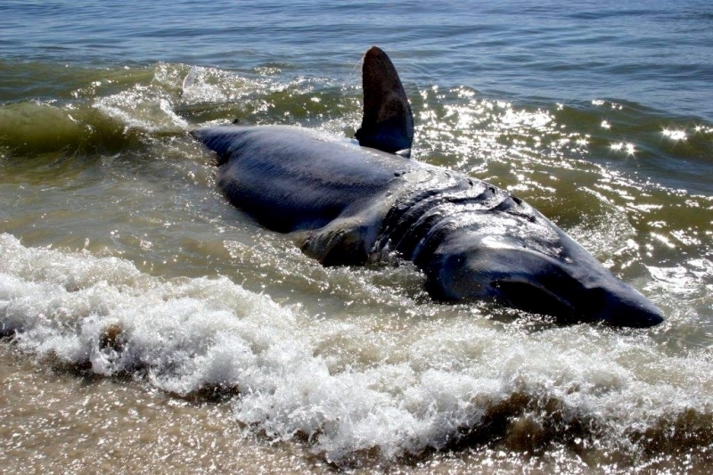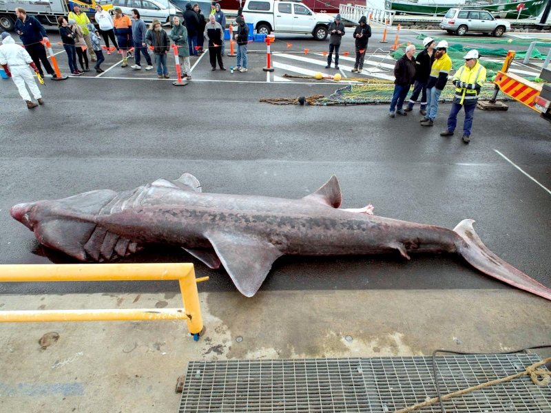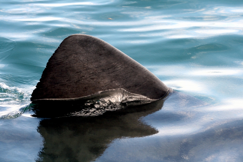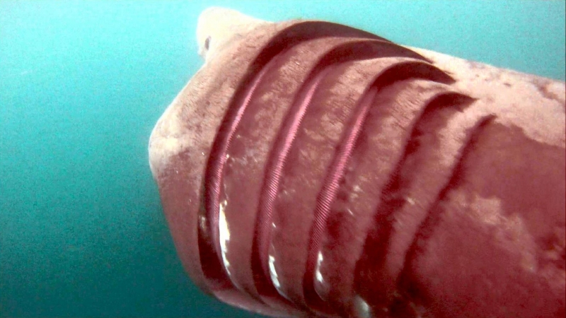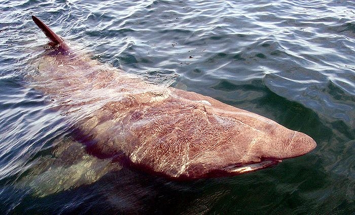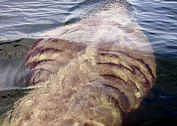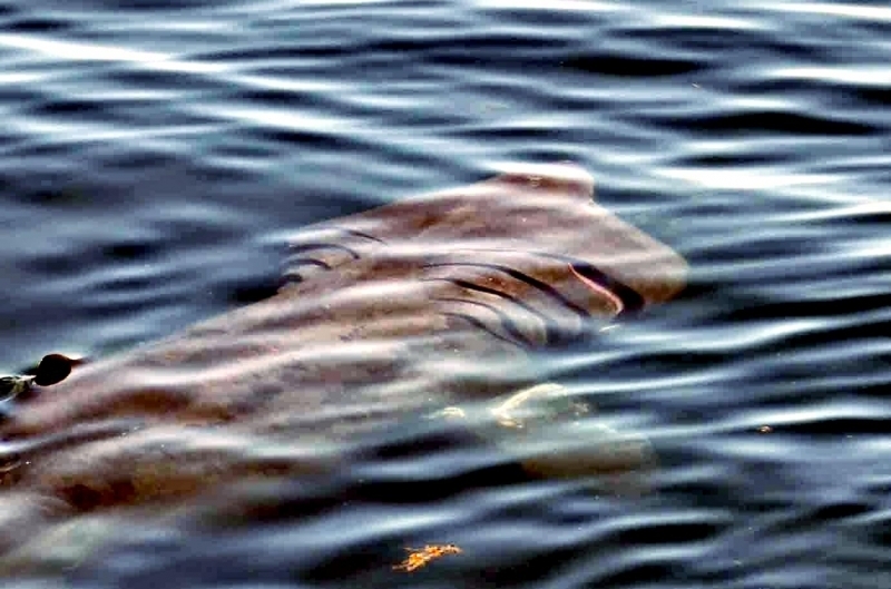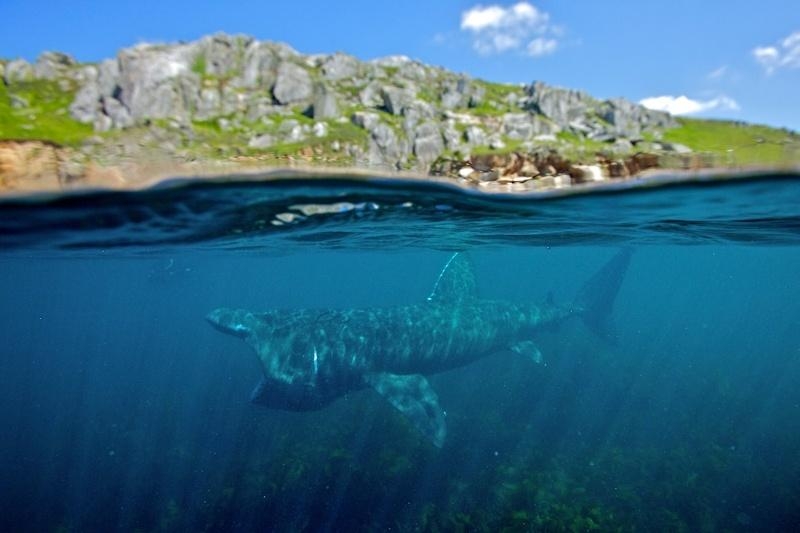 Basking Sharks are recognized by their huge sizes, conical snouts, sub-terminal mouths, extremely large gill slits, dark bristle-like gill rakers inside the gills, strong caudal keels and large lunate (curved) tails. Basking Sharks have numerous, small teeth. Their bodies are mottled gray-brown to slate-gray or black in color, sometimes with lighter patches on the dorsal side. The ventral side is paler, often with white patches under the snout & mouth or along the ventral side. It is the second largest fish/shark, only surpassed by the Whale Shark. As the 2nd largest shark species in the world, the Basking Shark has few natural predators. Apart from hunting by humans, Great White Sharks and Killer Whales are their only real threat, mainly due to the fact that Basking Sharks are slow & generally sluggish swimmers. Their average size is 6.7-8.8 meters with the largest measured Basking Shark at 9.75 meters and a 9.14 meters long individual was recorded that weighed 3,900 kilograms. There are also unconfirmed reports of Basking Sharks up to 13.7 meters long.