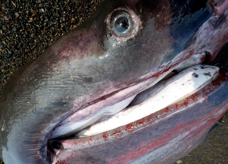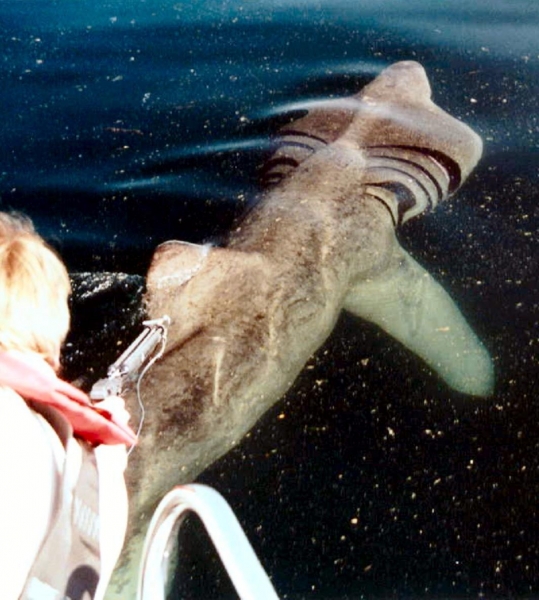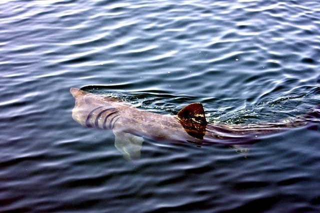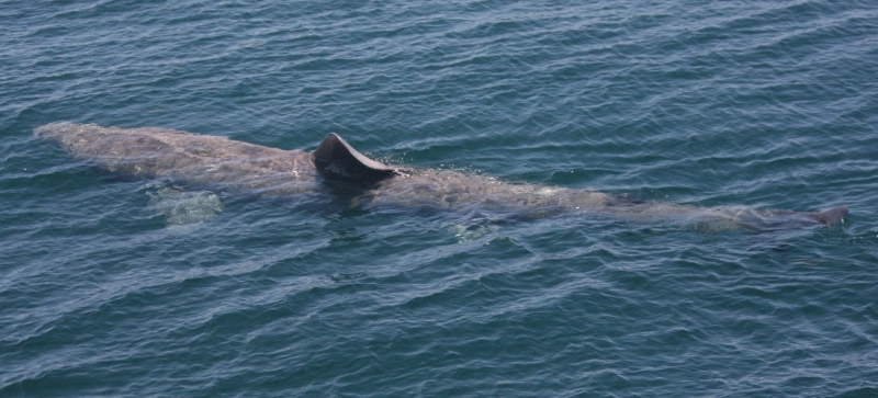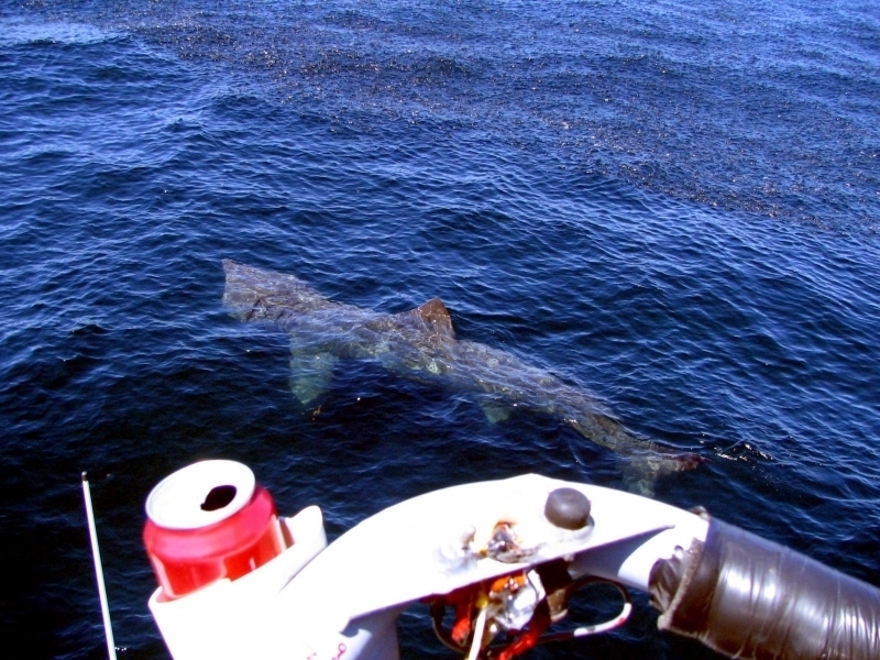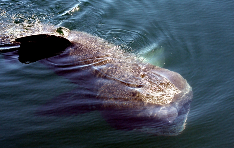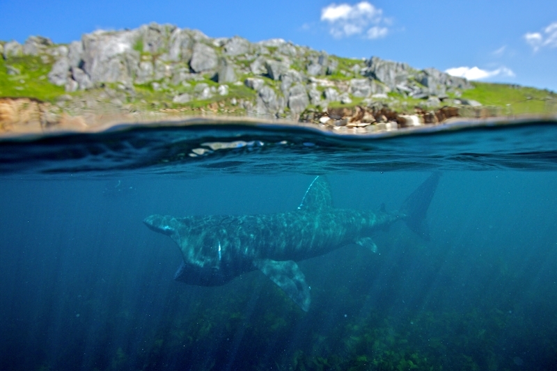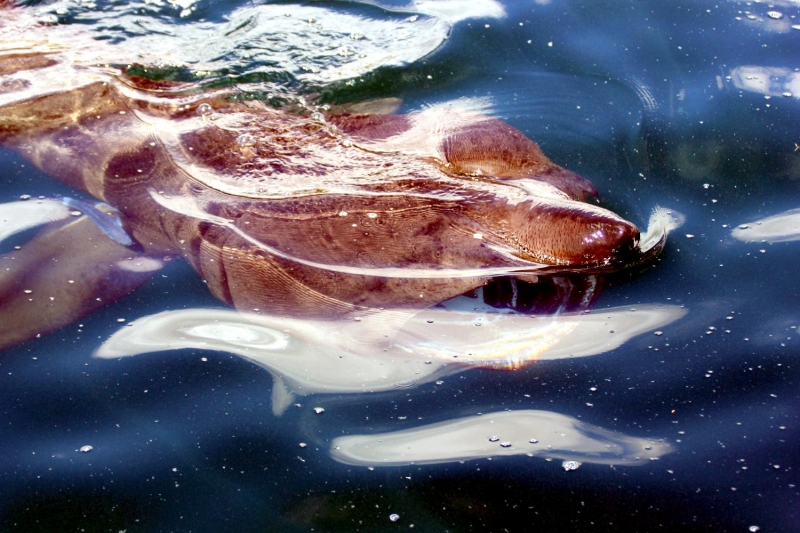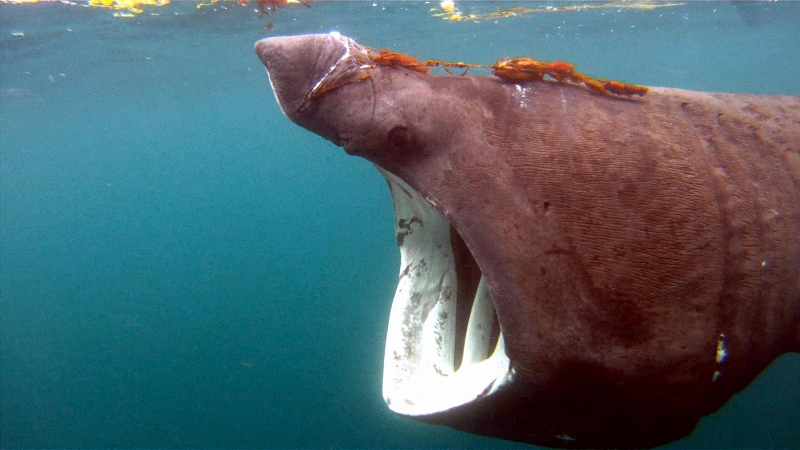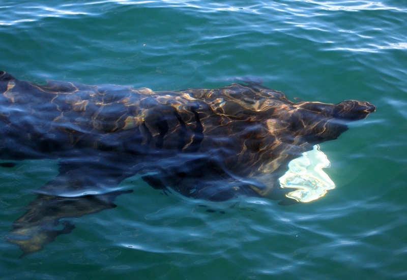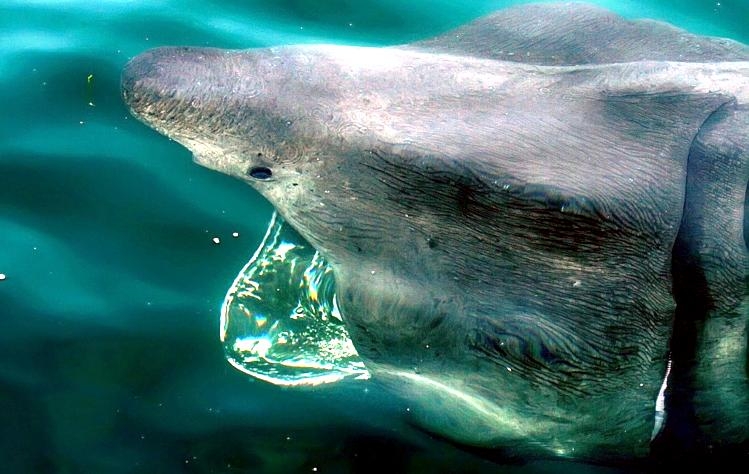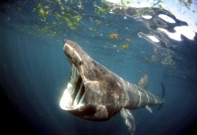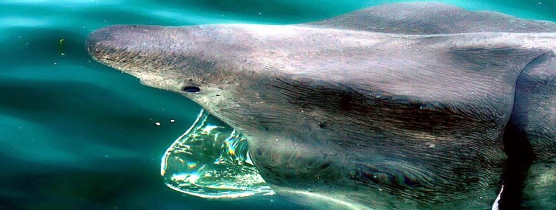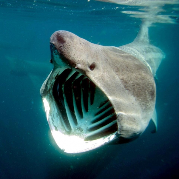 Basking Sharks are generally found in temperate waters of both the Pacific and Atlantic Oceans. They are usually observed by humans at or near the surface and have been sighted along almost every coastline bordering both the Atlantic & Pacific Oceans. The Basking Shark gets its name due to being slow moving and enjoying time basking in the sun. Along the west coast of North America, they have been sighted from British Columbia to Baja California usually in the winter & spring months. This trend is reversed in North Atlantic areas. Basking Sharks can open their cavernous mouths up to 1.2 meters wide. This allows water to pass over their gill rakers which strain small fishes, eggs and invertebrates out of the water. They are often seen feeding near the surface. They give birth to live young; the smallest juvenile recorded measured about 1.65 meters in length. Females are believed to reach sexual maturity when they reach 4-4.9 meters in length. Basking Sharks have been observed breeding in the North Atlantic in May. The location of pupping and nursery grounds is unknown.