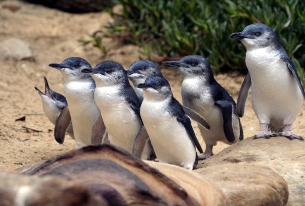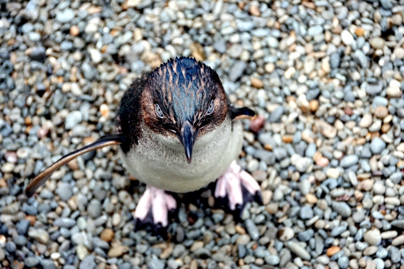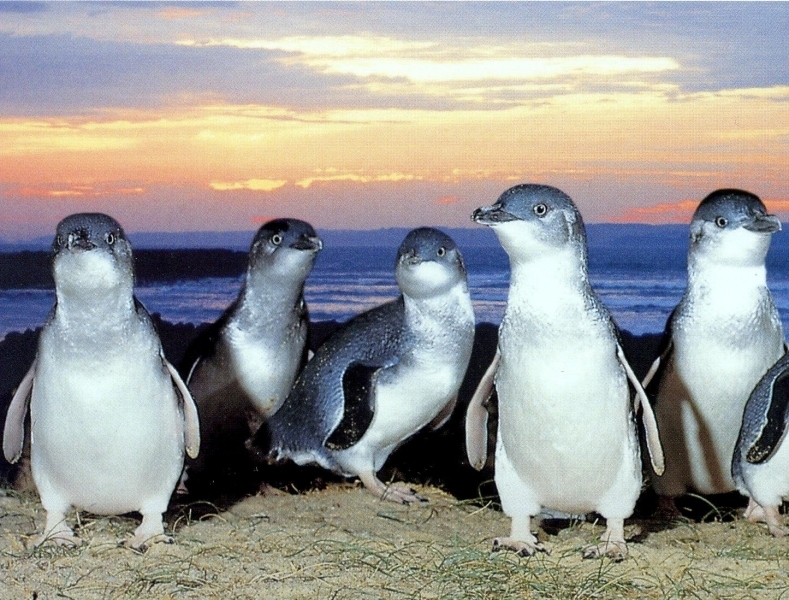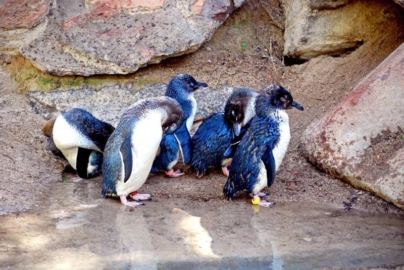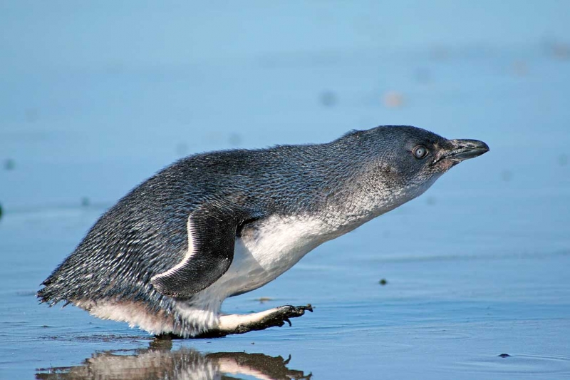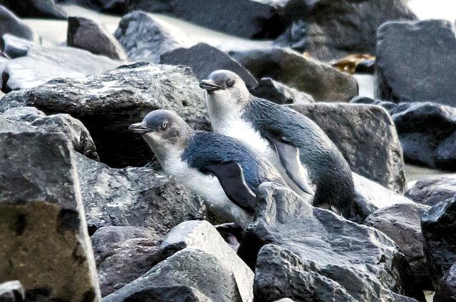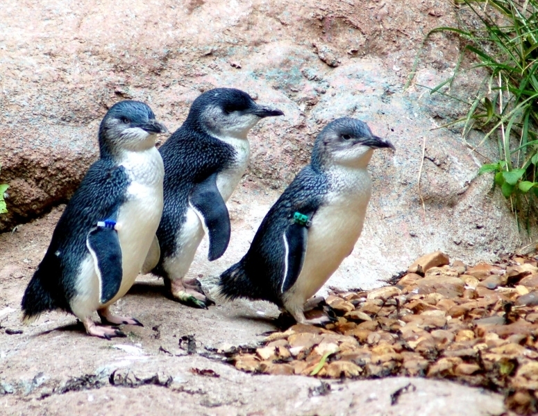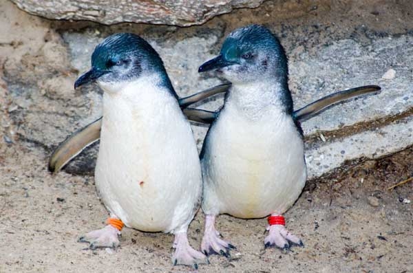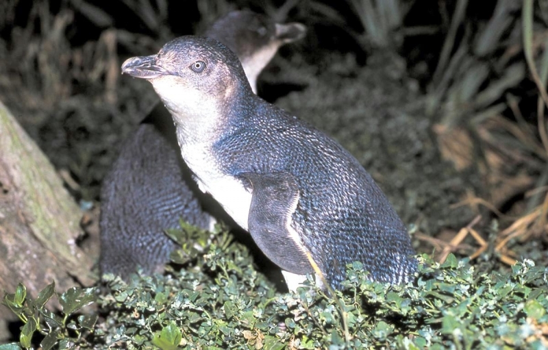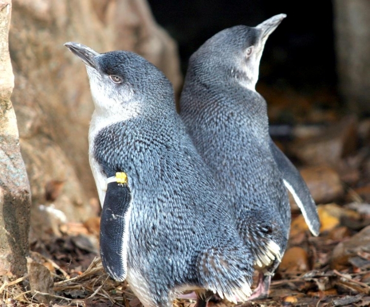 Blue Penguins also known as Fairy Penguins, were first described by Johann Reinhold Forster in the late 18th century during his voyages with Captain Cook on the HMS Resolution. They are the smallest penguin species standing only 25 centimeters tall and weighing an average of 1 kilogram. They are also known by the name Kororā, which comes from the Maori language, The word Penguin first appears in the 16th century as a synonym for the now extinct Great Auk. When European explorers discovered what are today known as Penguins in the Southern Hemisphere, they noticed their similar appearance to the Great Auk of the Northern Hemisphere and named them after this bird, although they are not closely related. They have a slightly different “tuxedo” in that they sport slate-blue plumage on the back with a white belly. Blue Penguins are known for the variety of calls they use to communicate at sea, declare territory and call for mates. Breeding colonies of Blue Penguins are found throughout southern Australia and New Zealand. In Australia, distribution extends from the Shoalwater Islands, near Perth in Western Australia across the southern coast including the Bass Strait & Tasmania and along the east coast as far north as South Solitary Island in New South Wales. In New Zealand, Blue Penguins are found along the coasts of the Chatham & Stewart Islands. This species typically breeds on offshore islands, but colonies are occasionally formed along the mainland where they are inaccessible to predators.
