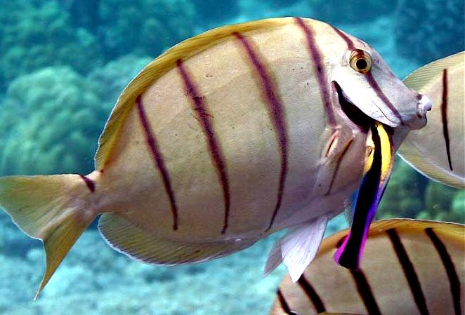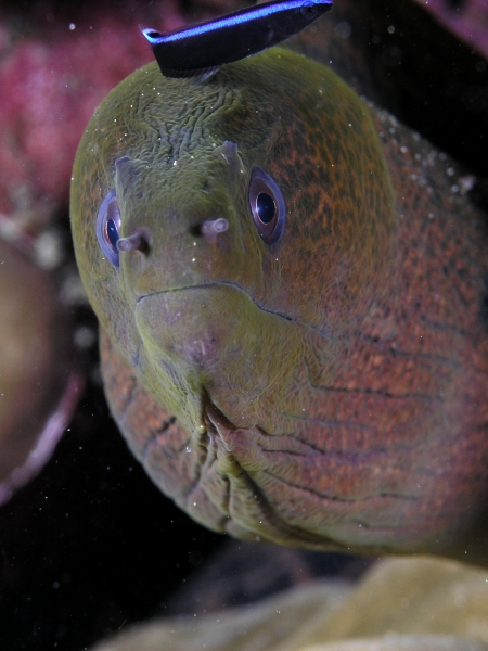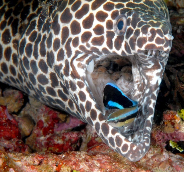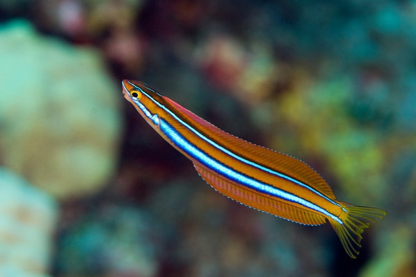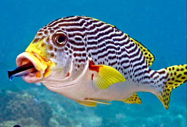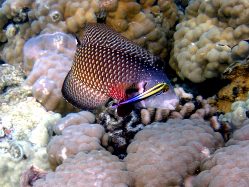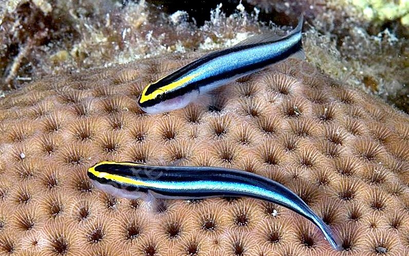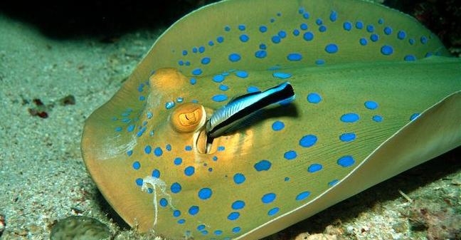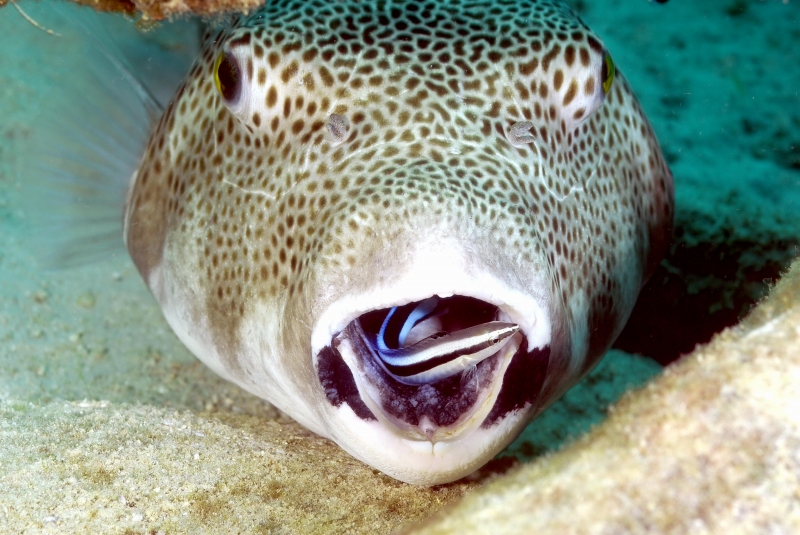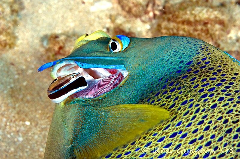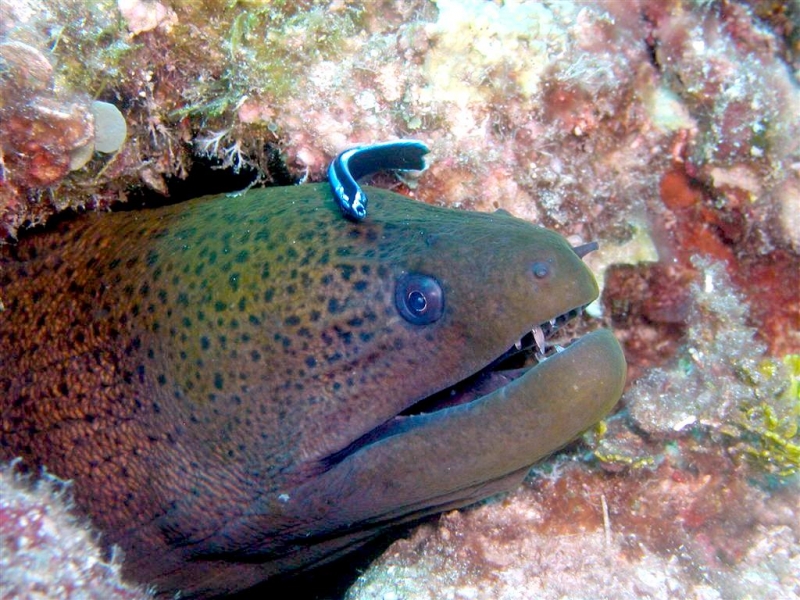 The Cleaner Wrasse is a typically small species of fish found in the coastal waters of the world’s major oceans. The word “wrasse” comes from the Cornish word wragh, meaning an old woman or hag via the Cornish dialect wrath. The Cleaner Wrasse is often seen alongside other marine animals including sharks and in a natural “cleaning station” where various marinelife come to be cleaned. This situation is very similar to a “drive-through” car wash. There are more than 500 different species of Cleaner Wrasse found in the shallower coastal waters & coral reefs of the Pacific, Indian and Atlantic oceans. Cleaner Wrasse most commonly inhabit areas that have an abundance of both food and places to hide, making coral reefs and rocky shores the perfect home. Cleaner Wrasse are the most well-known wrasse species as they are often seen going into the mouths of large marine animals in order remove the dead material inside. Cleaner Wrasse feed on dead tissues, scales & parasites that lurk inside the mouth of the larger animal and few are actually eaten by the predator that they are assisting. The Cleaner Wrasse comes in a variety of colors and sizes depending on the species.