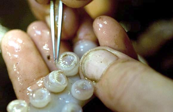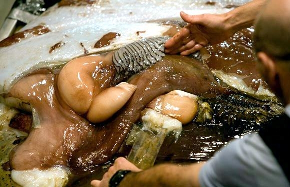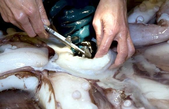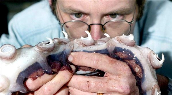The Colossal Squid is one of the largest, most elusive and mysterious of the cephalopods. These massive squid are reported to measure up to 14 meters in total length, with mantle lengths of about 2-4 meters which would make adult Colossal Squid quite a bit larger than Giant Squid and they can weigh an estimated 150 kilograms. These amazing creatures were first identified in 1925, when 2 Colossal Squid arms were recovered from a Sperm Whale’s stomach. Since then, few specimens have been recovered and there is still very little known about this species. Colossal Squids have eyes that measure about 25 centimeters in diameter which are thought to be the largest eyes in the entire animal kingdom. They also have the largest beaks of any squid, which makes them a fearsome predator along with the 25 rotating hooks found in two rows on the ends of their tentacles.
