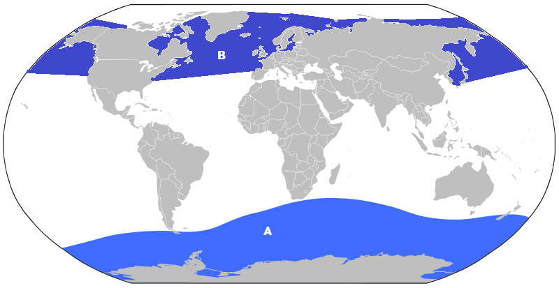 Colossal Squids are a deep-water species, living usually deeper than 1,000 meters which makes it very difficult for scientists to gather data on them, though juveniles have been found above 1,000 meters to the surface. So far they have had to depend mostly on juvenile specimens caught by deep-sea trawlers. Colossal Squids have been found in waters surrounding the Antarctic, primarily south of 40°S. Colossal Squid have been known to prey on large fish species, including Patagonian Toothfish or Chilean Sea Bass caught on long-lines set by the fishermen. Sperm Whales are known predators of Colossal Squid in the southern oceans. Reproduction is thought to be similar to a related species, but it is actually unknown for Colossal Squids as no mature males or females have yet been collected or observed. Not enough is known on Colossal Squid populations to determine their conservation status and because of its remote habitat, this species is not considered dangerous to humans.