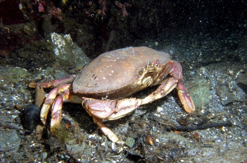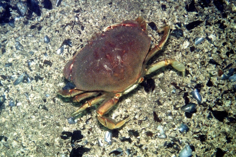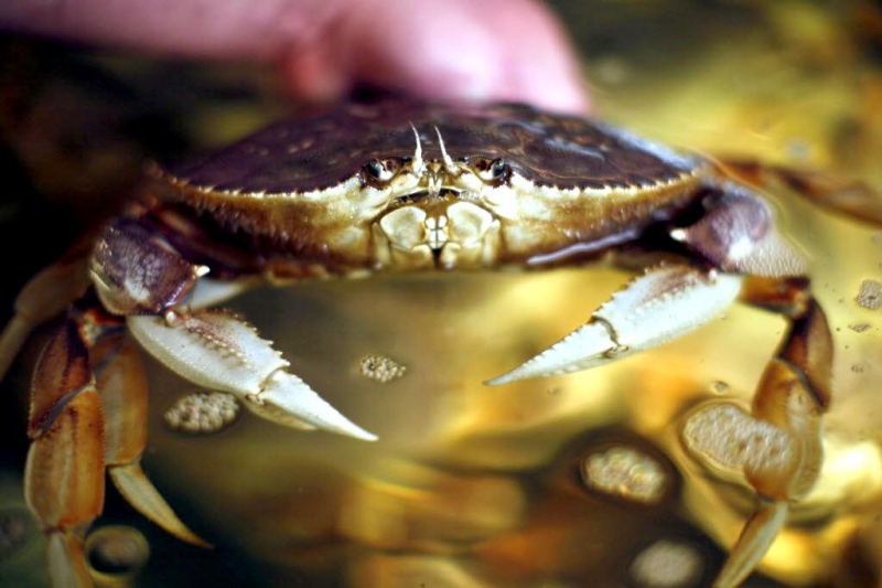 The Dungeness Crab is often considered to be the symbol for the “Cancer” sign. They are about 8 inches long. Its common name comes from the USA port of Dungeness, Washington. They are considered to be one of the best tasting sources of seafood as well. Many people don’t like to come into contact with them as they fear that the pincers of the crab will harm them. They likely won’t pinch though unless they feel in danger and then they try to defend themselves. They are a brown color that allows this crab to easily blend into its surroundings. The Dungeness Crab feature a very hard shell that the molt several times over the span of their life so that they are able to continue growing. They have 5 pairs of legs and the ends of them feature claws that they use for feeding and for self-protection. They tend to live in the eel grass beds and the bottom of the water.