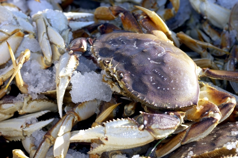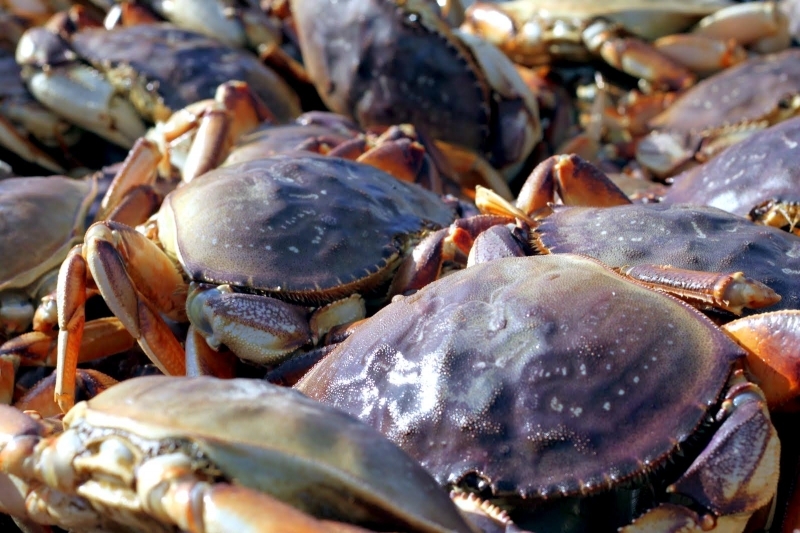 They are found living in North America, mainly along the west coast. There have been reports of some of them in the Atlantic Ocean as well. This has experts concerned because they aren’t sure how they got there. They worry about how the presence of this crab will affect the rest of that ecosystem. The Dungeness Crab often can blend into its surroundings so well that it is undetected. They often stick their heads into the sand when they feel there is some type of danger around them. They can also bury their entire body in the sand if they have enough time to do so. If they can’t bury themselves they will roll over onto the back so that their claws are facing the threat and they can fight. The claws of the Dungeness Crab are very sharp and they use them to be able to grasp food and then to break it apart. They also have smaller appendages that allow them to move the food into their mouth. They consume clams, crustaceans, small species of fish and just about anything that they can find that other predators have left behind. They spend a great deal of their time looking for food and eating what they come across.