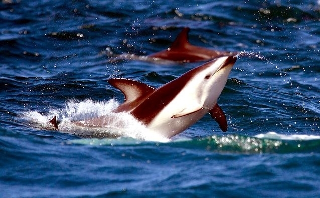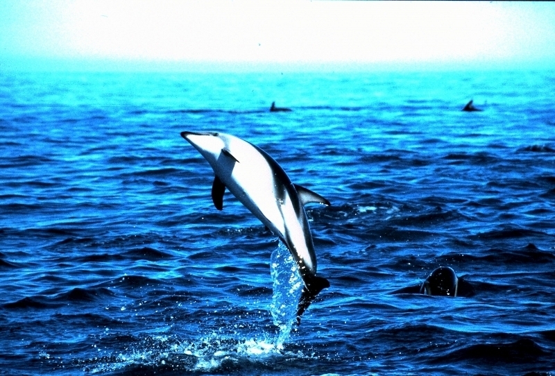 The relatively large size, sociable nature & sheer speed of the Dusky Dolphin means that it has very few predators that hunt it in its natural environment. Killer Whales are the main predators of the Dusky along with some large species of shark that venture into the shallower, coastal waters. Their biggest threat is people encroaching more and more on their natural habitats usually in the form of commercial fishing. As humans are fishing for the same shoaling fish as the Dusky, it often leads to them being caught up in vast nets where they can quickly become trapped. Other reasons for the decline in Dusky Dolphins include the fact that they are also hunted in some areas particularly Peru, for their meat and are injured by large boats that hit them. The Dusky Dolphin is thought to be one of the most intelligent animal species in the world and even communicates with other individuals using their own language which consists of a series of whistles, clicks and squeaks. The unique body shape of the Dusky means that it is incredibly flexible and in fact, may be the most agile species of dolphin in the world.