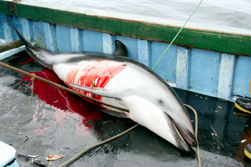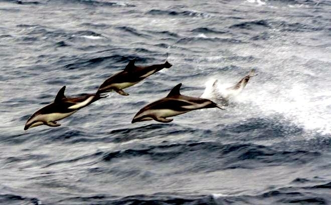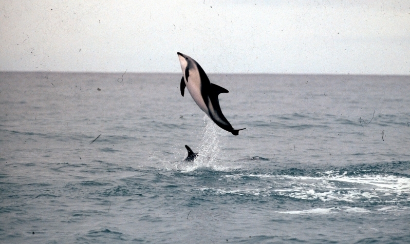 They are often seen leaping out of the water both when swimming & playing and the noise that is caused by them diving back into the water is able to travel for up to 1 kilometers through the water and up to 3 kilometers through the air. Dusky’s are known to be incredibly sociable animals with sick or injured individuals helped by others that push them towards the surface so the vulnerable individual is able to breathe. Along with being seen together in their own pods, Dusky Dolphins are also known to interact with other cetaceans including Common Dolphins, which they feed alongside. Despite being one of the most intelligent animals in the world, the increasing amount of man-made obstacles that litter the sea has led to a decline in Dusky Dolphin populations as they are often hit by them. Populations around South America have also suffered greatly from hunting by people for their flesh which is used both as bait for fish & for human consumption. A study carried out between 1991 and 1993 revealed that 7,000 Dusky Dolphins were captured each year and although the hunting of dolphins has been recently banned, they are still commonly hunted as food. The issue however that most affects all Dusky Dolphin populations is the fact that they are often caught by accident in large fishing nets that are targeting the same fish that the dolphins are. However, in a growing number of places around the world watching the acrobatic Dusky is becoming increasingly popular with tourists and bringing awareness to the threats that they face. Today, the Dusky Dolphin is listed by the IUCN as being Data Deficient which means that although certain populations in certain areas are well reported, little is really known about those individuals that inhabit underpopulated regions. However, their numbers are known to be drastically declining throughout the southern hemisphere primarily due to the increasing levels of human activity in their native environments. Despite the hunting of them being banned, Dusky Dolphins are still caught in nets and trawlers in their thousands on a yearly basis.