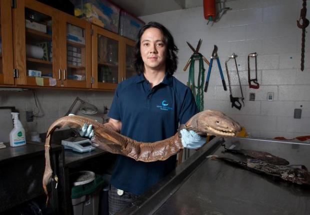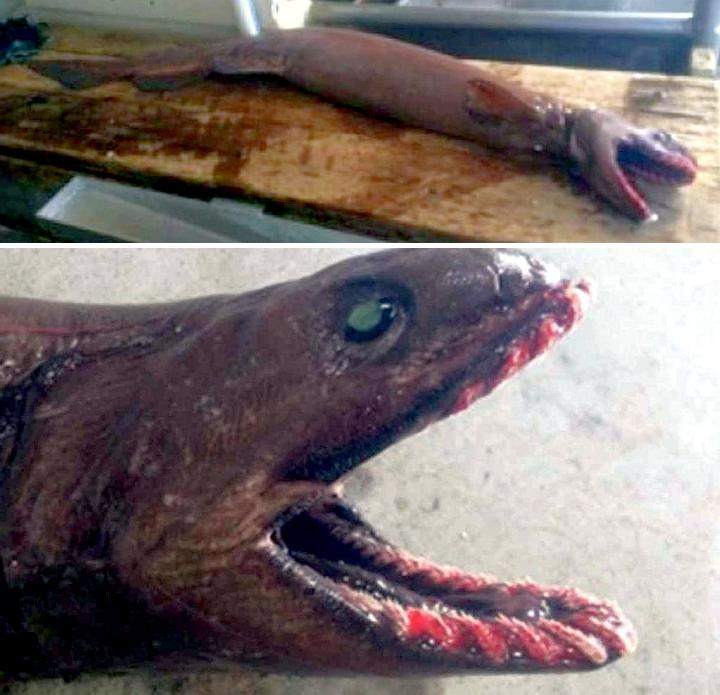 There are several Frilled Sharks that have their tails without tips possibly because of other shark attacks.