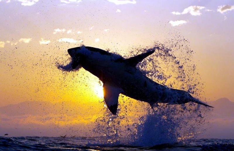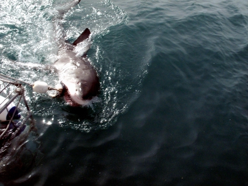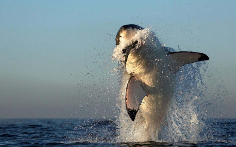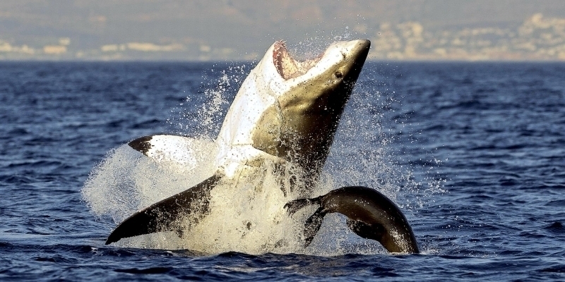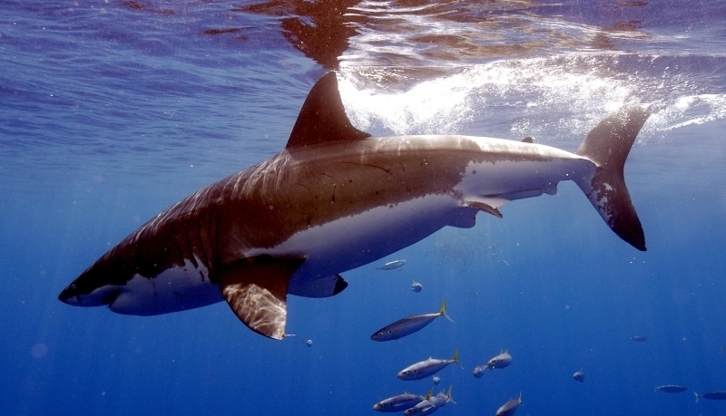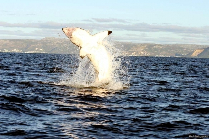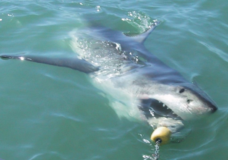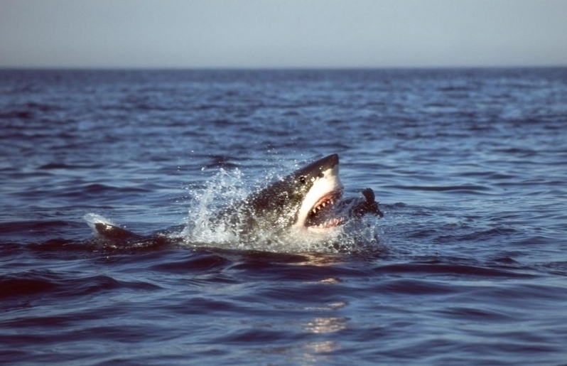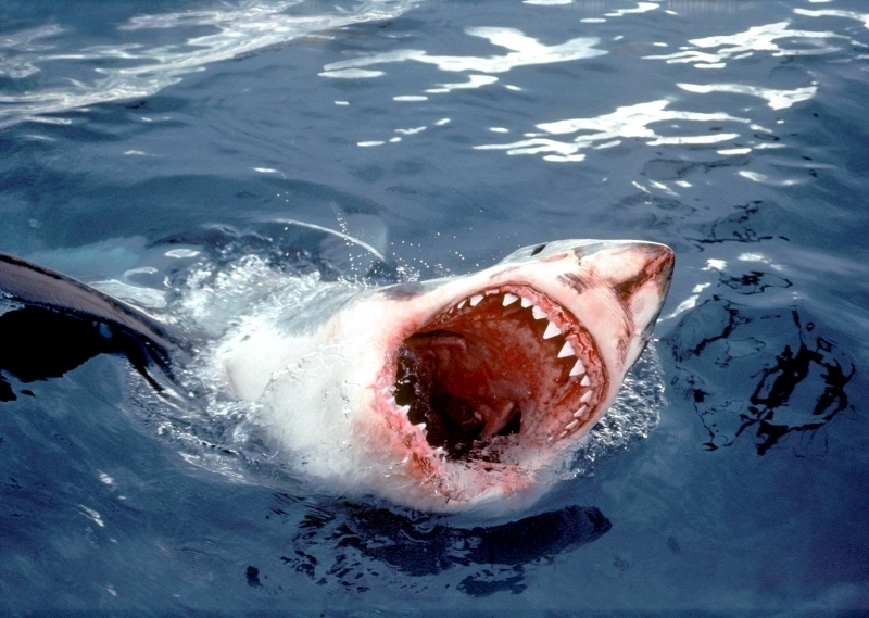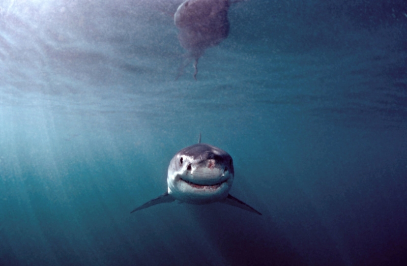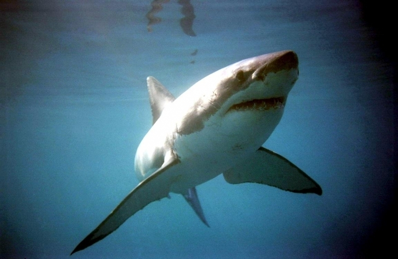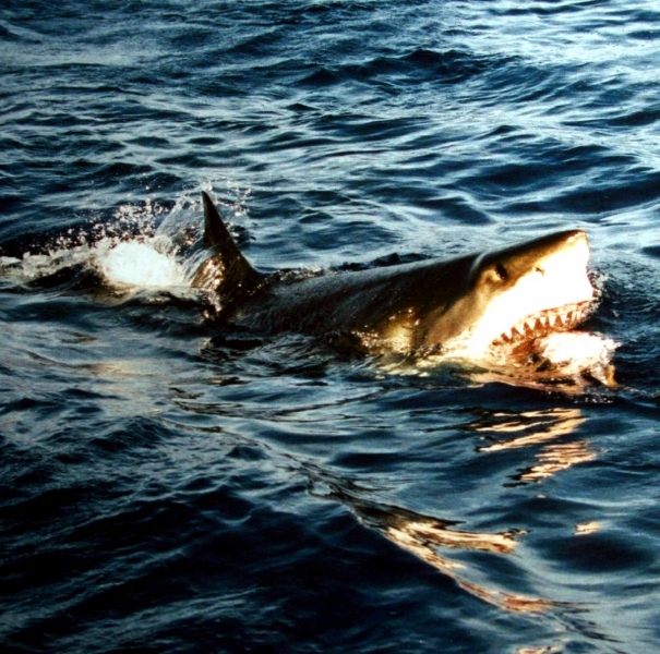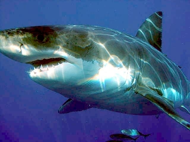 The Great White is at the top of the food chain and has few threats in the ocean. Only Killer Whales and a larger Great White can pose a risk. The only other risk to the Great White Shark is human interaction. They are sometimes caught by accident in fishing nets or intentionally sought out by sport fisherman. Their jaws & fins are sold for considerable amounts of money. Not much is known about the mating habits of Great White Sharks. What is known is that after mating the female develops several eggs which hatch in her womb. The newly hatched shark pups feed on unfertilized eggs in the womb as they develop before being born. In general, the mother gives birth to a litter of 2 to 10 pups, each of which average 2-3 foot in length. Male Great Whites reach maturity at 9-10 years of age. Females mature even later, between 14-16 years of age. Females are thought to give birth once every couple of years, but even that is uncertain. Great White Sharks spend their time in temperate waters all over the world, although they have been known to make brief trips into colder water in the north. They live in the upper part of the ocean, towards the surface and close to the shore where sunlight shines through and prey is available.