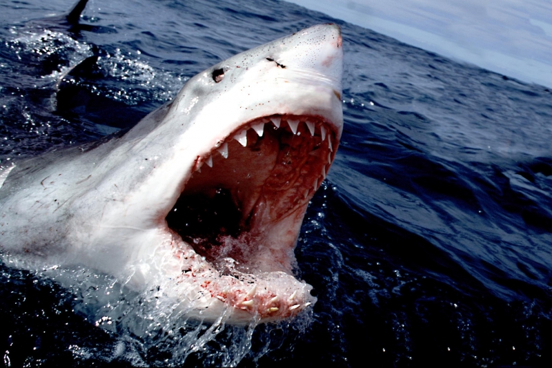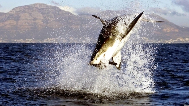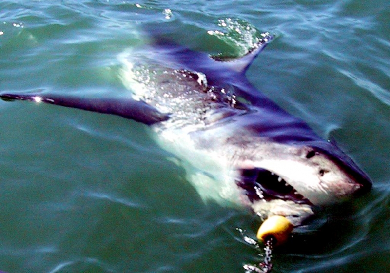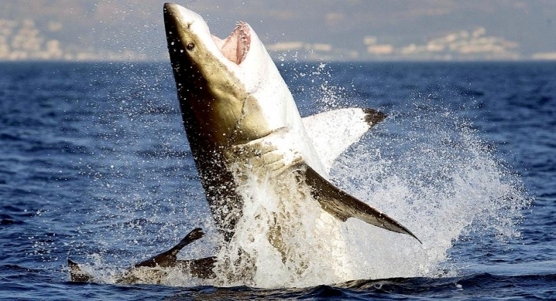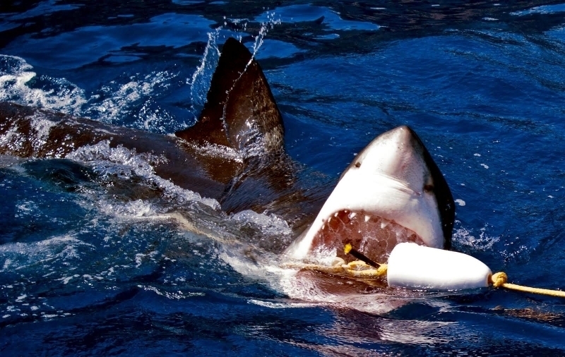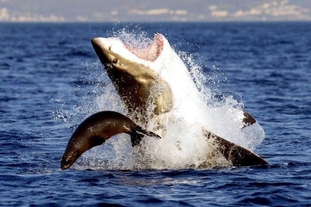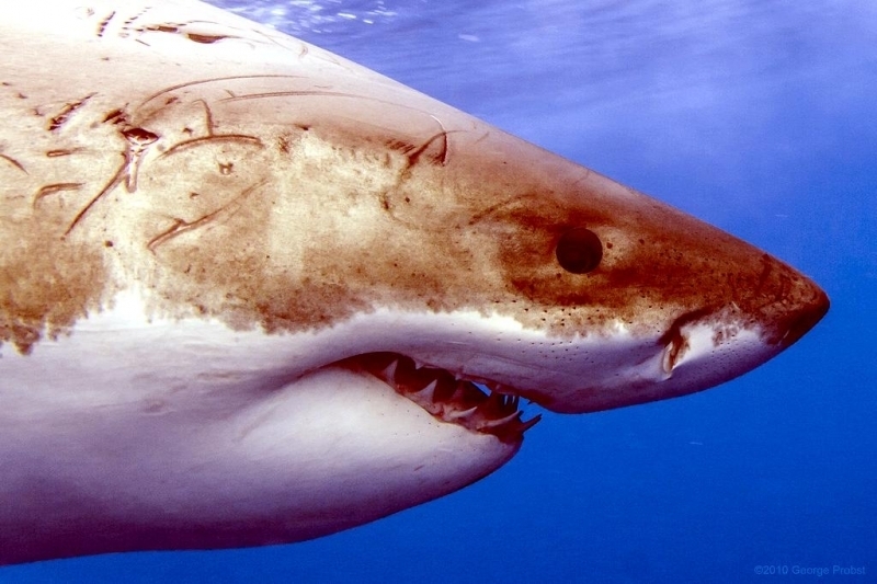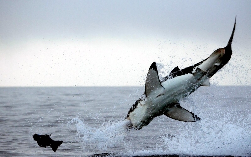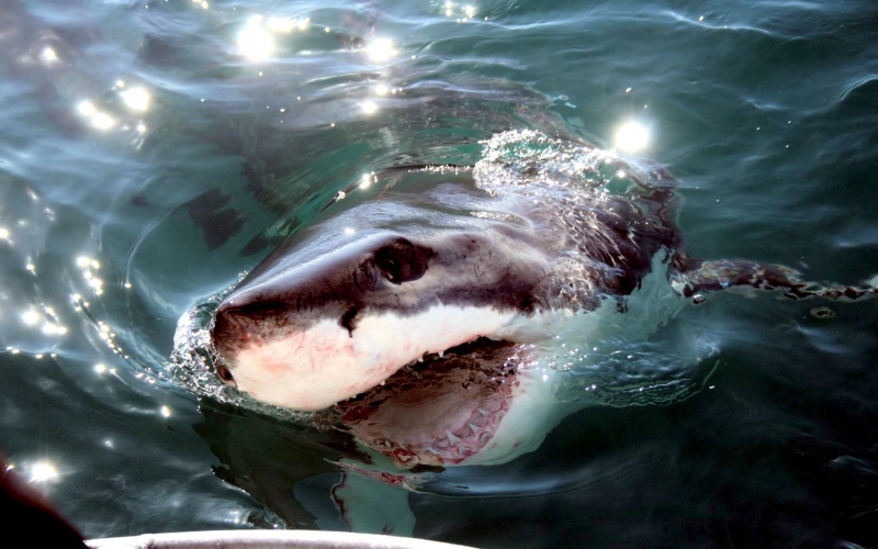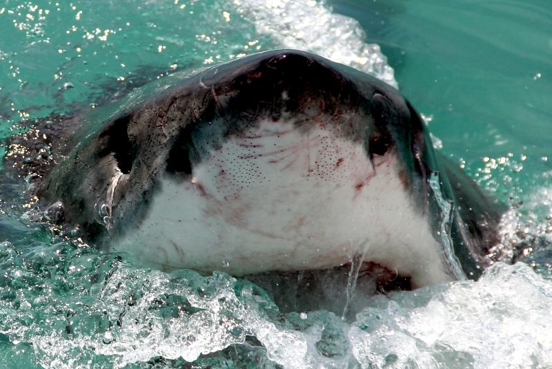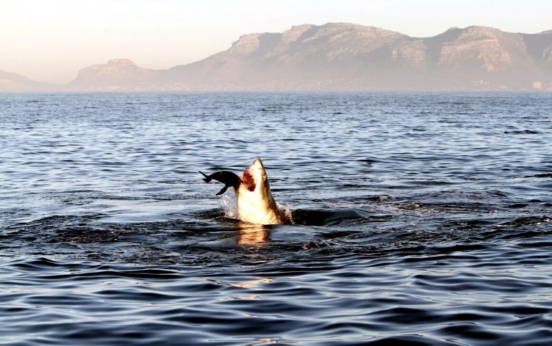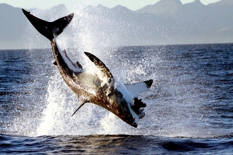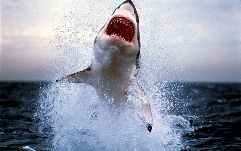 The Great White is at the top of the food chain and has few threats in the ocean. Only Killer Whales and a larger Great White can pose a risk. The only other risk to the Great White Shark is human interaction. They are sometimes caught by accident in fishing nets or intentionally sought out by sport fisherman. Their jaws & fins are sold for considerable amounts of money. Not much is known about the mating habits of Great White Sharks. What is known is that after mating the female develops several eggs which hatch in her womb. The newly hatched shark pups feed on unfertilized eggs in the womb as they develop before being born. In general, the mother gives birth to a litter of 2 to 10 pups, each of which average 2-3 foot in length. Male Great Whites reach maturity at 9-10 years of age. Females mature even later, between 14-16 years of age. Females are thought to give birth once every couple of years, but even that is uncertain. Great White Sharks spend their time in temperate waters all over the world, although they have been known to make brief trips into colder water in the north. They live in the upper part of the ocean, towards the surface and close to the shore where sunlight shines through and prey is available.