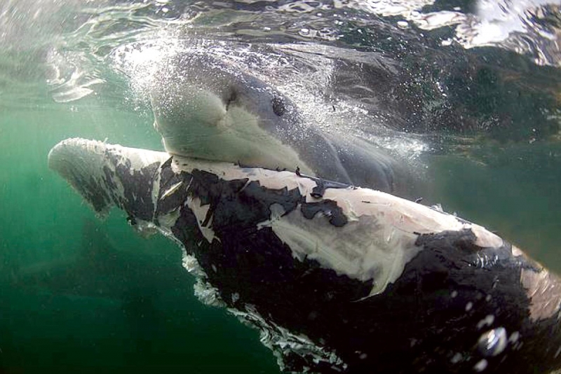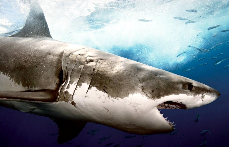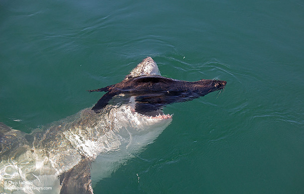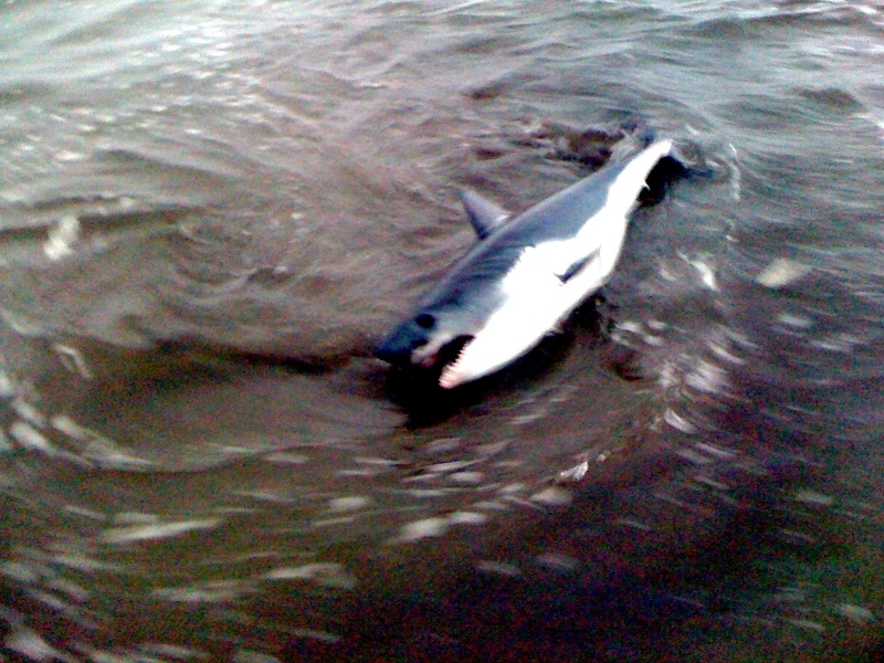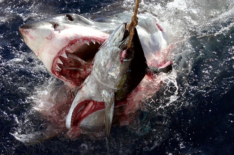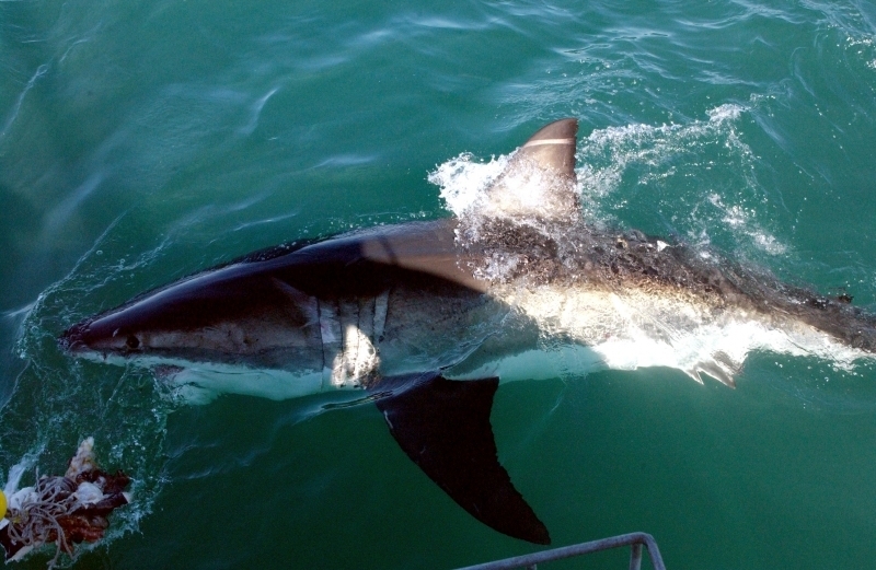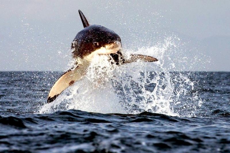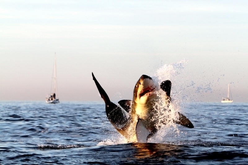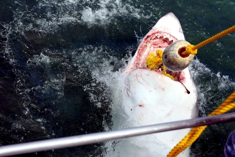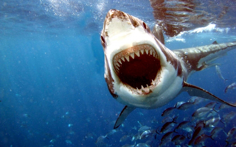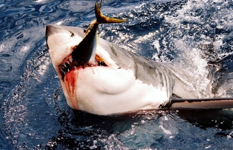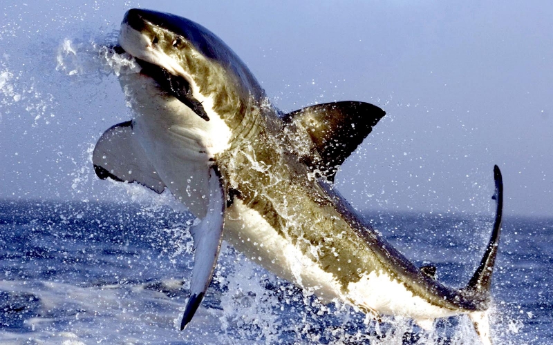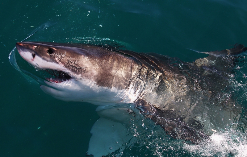 The Great White is at the top of the food chain and has few threats in the ocean. Only Killer Whales and a larger Great White can pose a risk. The only other risk to the Great White Shark is human interaction. They are sometimes caught by accident in fishing nets or intentionally sought out by sport fisherman. Their jaws & fins are sold for considerable amounts of money. Not much is known about the mating habits of Great White Sharks. What is known is that after mating the female develops several eggs which hatch in her womb. The newly hatched shark pups feed on unfertilized eggs in the womb as they develop before being born. In general, the mother gives birth to a litter of 2 to 10 pups, each of which average 2-3 foot in length. Male Great Whites reach maturity at 9-10 years of age. Females mature even later, between 14-16 years of age. Females are thought to give birth once every couple of years, but even that is uncertain. Great White Sharks spend their time in temperate waters all over the world, although they have been known to make brief trips into colder water in the north. They live in the upper part of the ocean, towards the surface and close to the shore where sunlight shines through and prey is available.