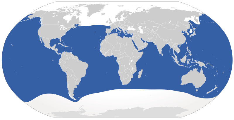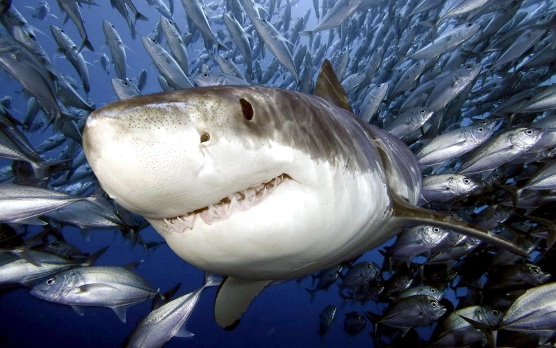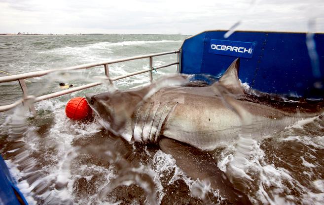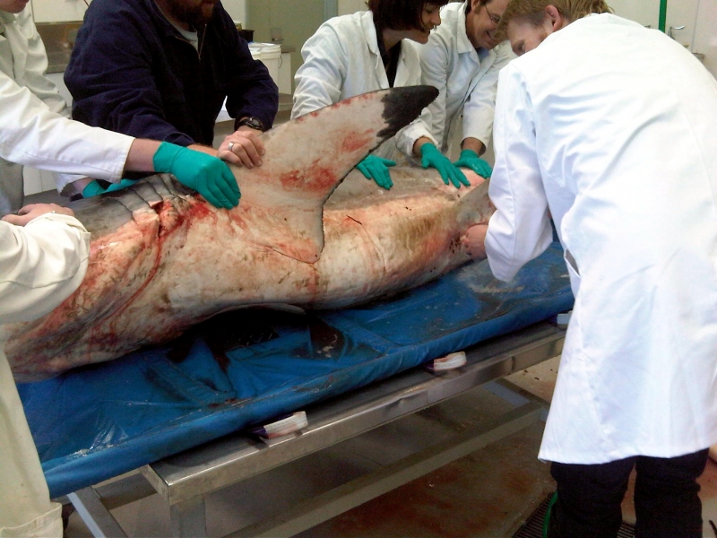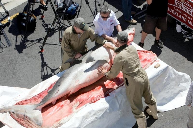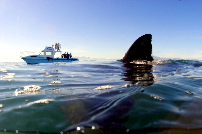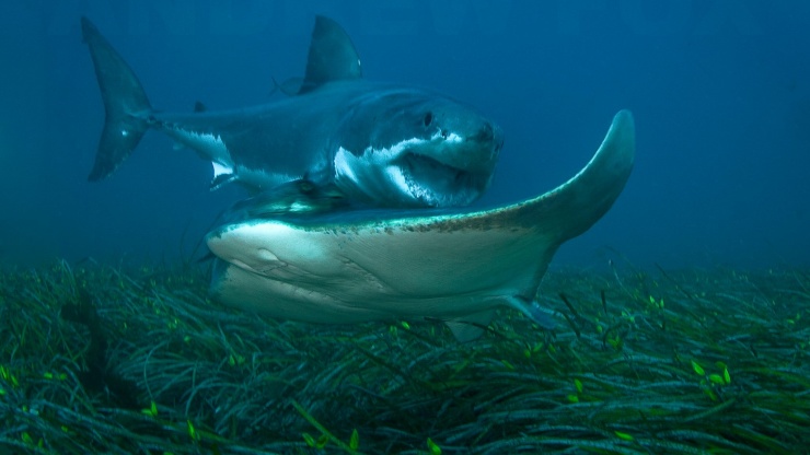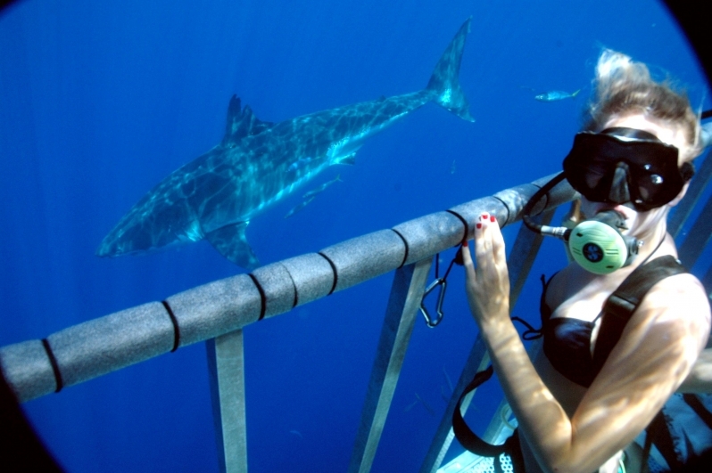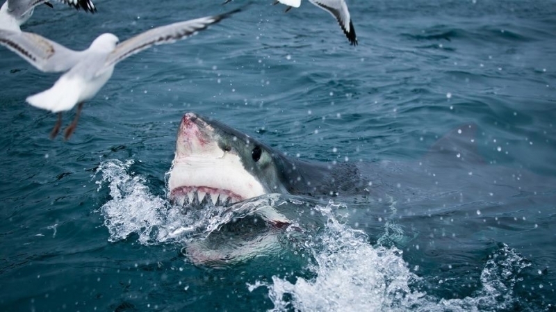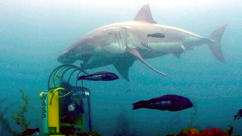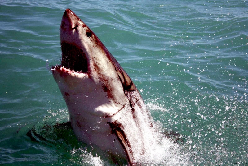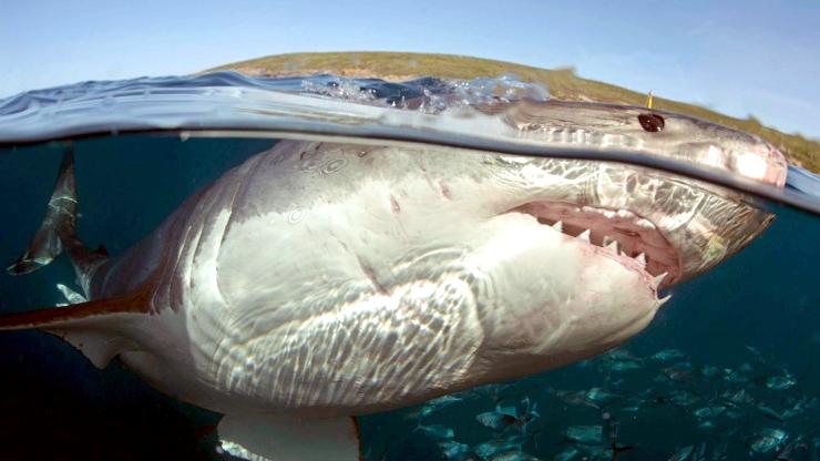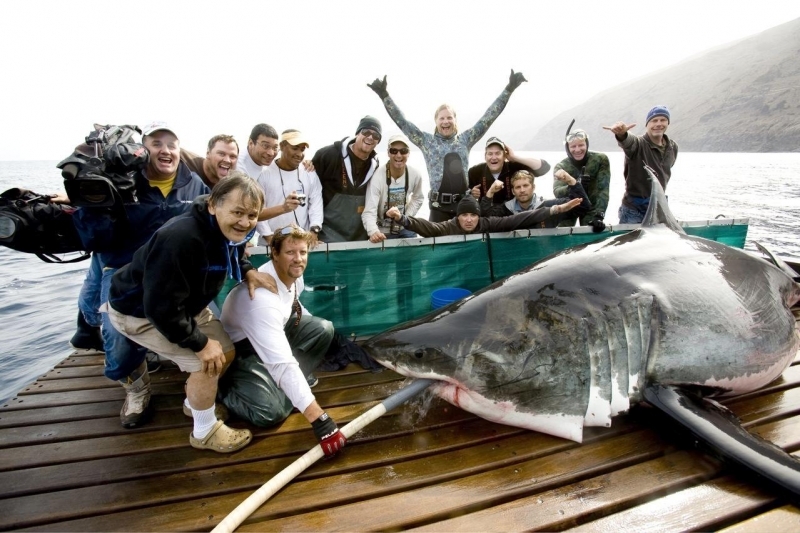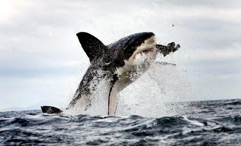 The Great White is at the top of the food chain and has few threats in the ocean. Only Killer Whales and a larger Great White can pose a risk. The only other risk to the Great White Shark is human interaction. They are sometimes caught by accident in fishing nets or intentionally sought out by sport fisherman. Their jaws & fins are sold for considerable amounts of money. Not much is known about the mating habits of Great White Sharks. What is known is that after mating the female develops several eggs which hatch in her womb. The newly hatched shark pups feed on unfertilized eggs in the womb as they develop before being born. In general, the mother gives birth to a litter of 2 to 10 pups, each of which average 2-3 foot in length. Male Great Whites reach maturity at 9-10 years of age. Females mature even later, between 14-16 years of age. Females are thought to give birth once every couple of years, but even that is uncertain. Great White Sharks spend their time in temperate waters all over the world, although they have been known to make brief trips into colder water in the north. They live in the upper part of the ocean, towards the surface and close to the shore where sunlight shines through and prey is available.