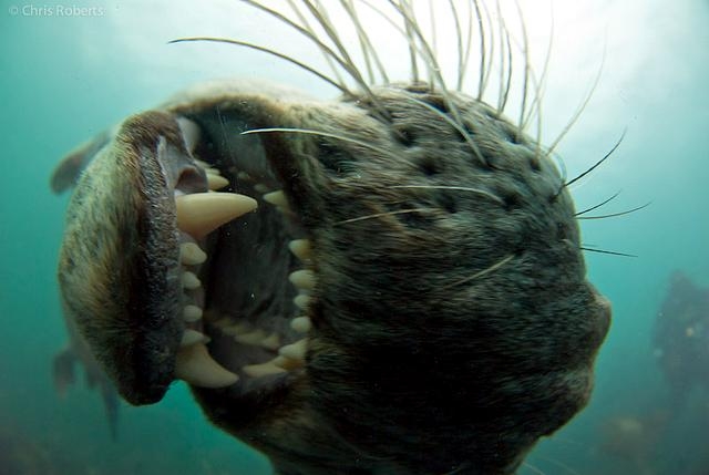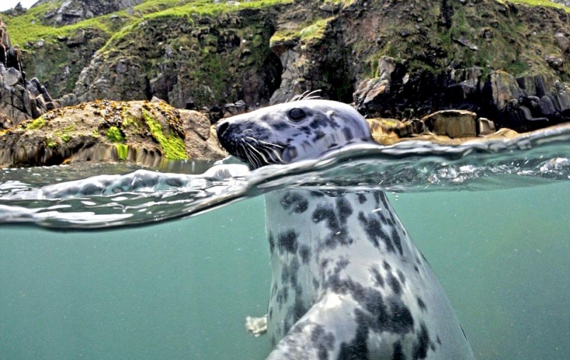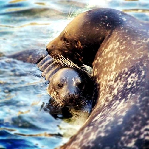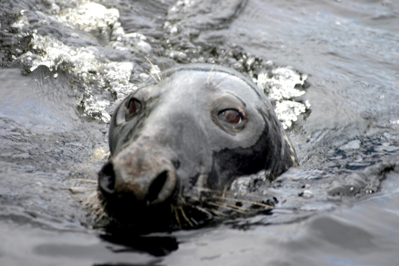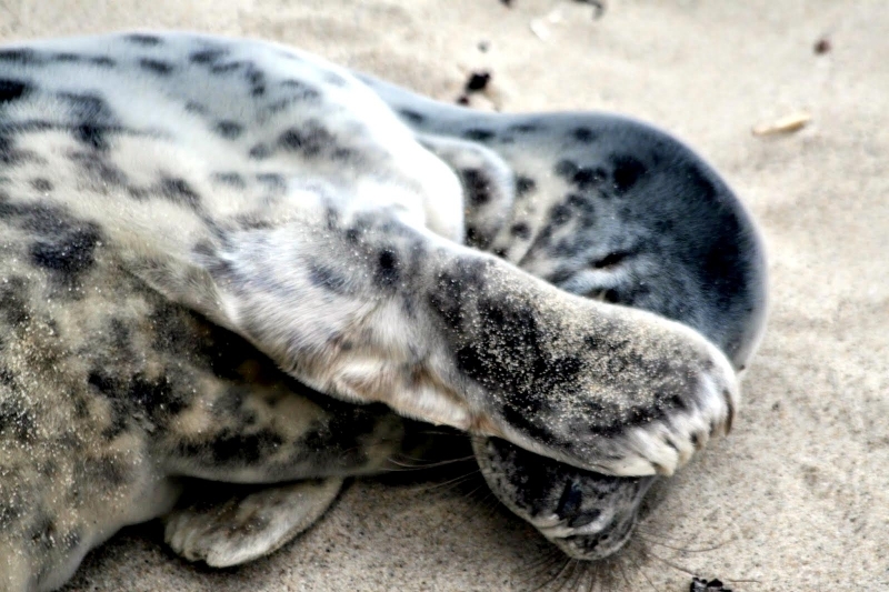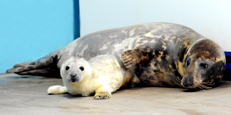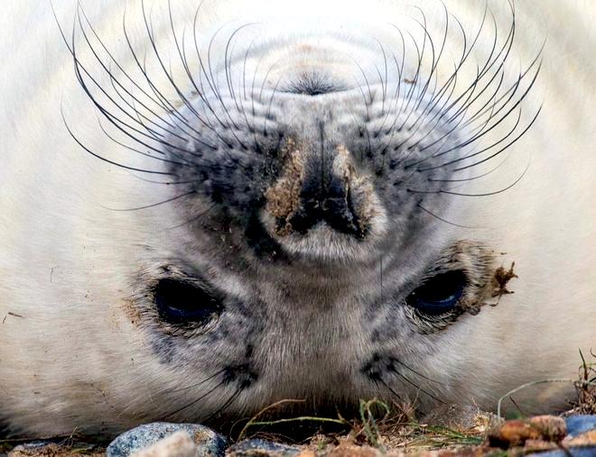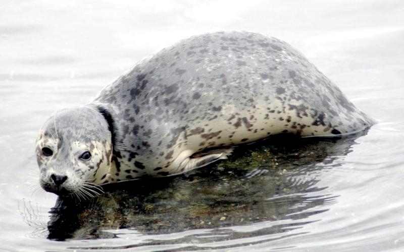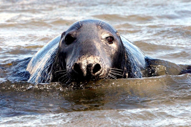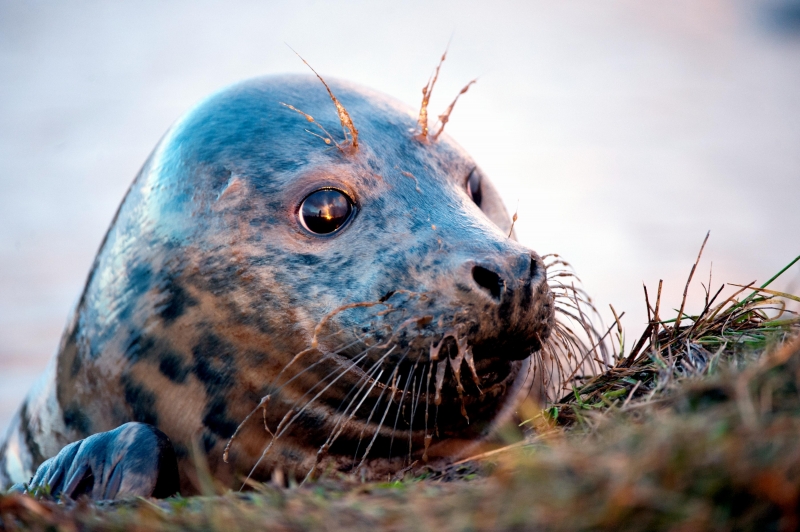 Grey Seals have a wide variety of coloring. Males tend to have a dark brown-gray to black coat with a few light patches. Females are generally light gray-tan, lighter on the chest with dark spots and patches. Adult males and some older adult females to a lesser extent, have a characteristically long nose with wide nostrils, which is why this species is called “Horsehead” in Canada and why its Latin name translates to “Hooked-nose Pig of the Sea”. Adult males in the eastern Atlantic population are smaller than those of the western Atlantic measuring between 1.95-2.5 meters in length and weighing 170-310 kilograms. Adult females measure 1.65-2.1 meters in length and weigh between 103-180 kilograms. The western Atlantic Grey Seals tend to be about 20% heavier. Grey Seals have been known to dive to depths up to 300 meters for as long as 20 minutes. Females live up to 35 years of age, males up to 25 years. Members of the western Atlantic population generally live longer. Their maximum recorded ages are 46 years for females and 29 years for males, although in captivity, males actually live longer into their 40’s such as the 42-year-old “Orkney”, a male Grey Seal at the San Francisco Zoo who died in 2013. Grey Seals are found in the north Atlantic Ocean separated into three distinct populations: the western Atlantic population is found off the coast of Canada from north Labrador down to New England occasionally as far south as Virginia. The eastern Atlantic population is found around the coasts of the United Kingdom and Ireland and on the coasts of the Faroe Islands, Iceland, Norway and northwestern Russia as far as the White Sea. Smaller populations are also found on the French, Dutch and German coasts and wandering individuals have been found as far south as Portugal. The third known population of Grey Seals is located in the Baltic Sea.