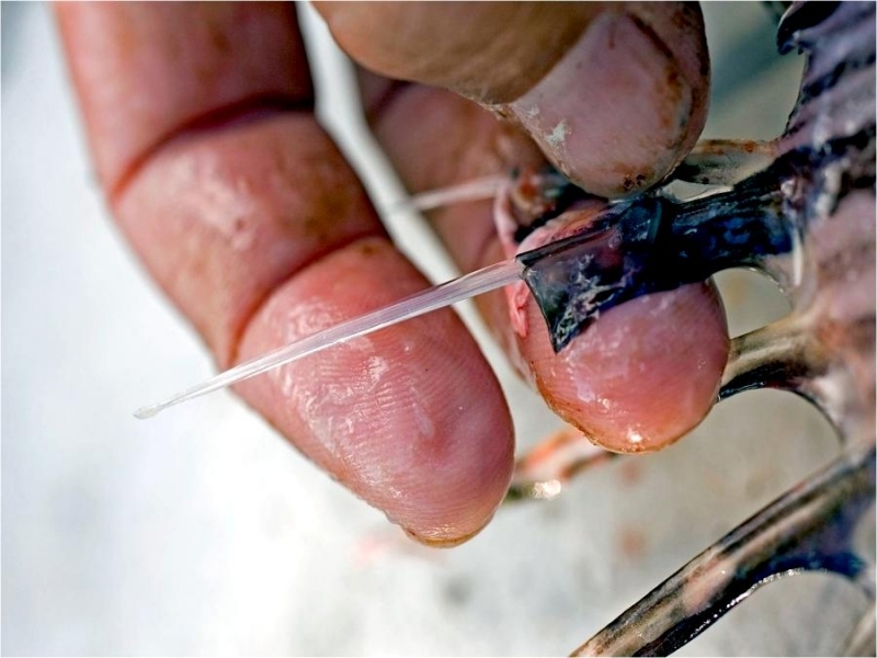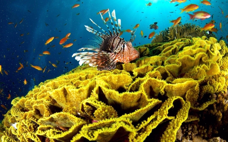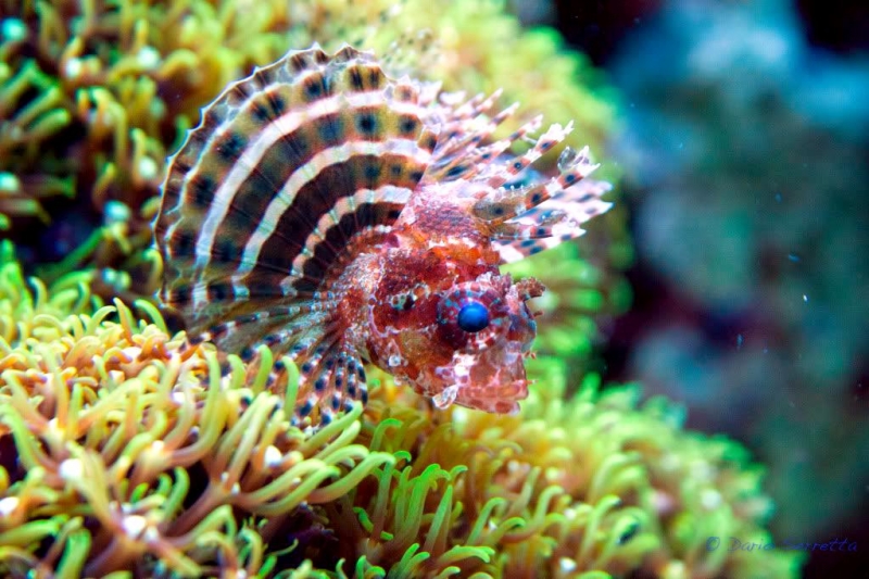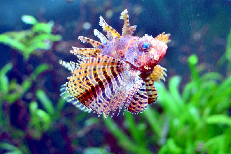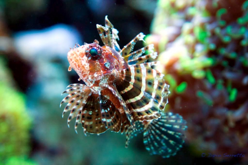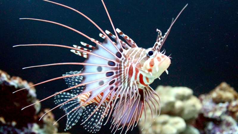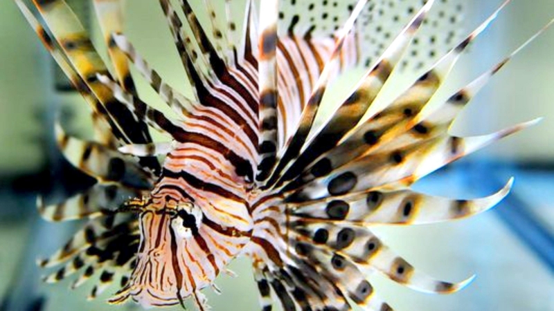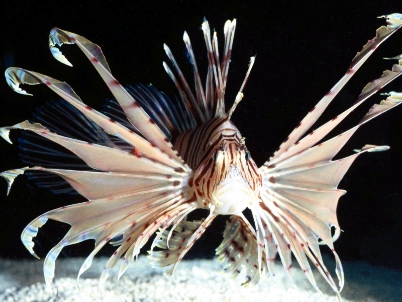 After the spine punctures the skin, the venom (a combination of protein & a toxin combining a neurotransmitter called acetylcholine) enters the wound when exposed to the venom glands within the grooves of the spine. If you are stung by a Lionfish, seek medical attention immediately. Lionfish are found in mostly all marine habitat types found in warm marine waters of the world tropics with heavy infestations in the Caribbean region. They have been found in water depths from 2 to 1,000 feet on hard bottom, mangrove, sea grass, coral and artificial reefs like shipwrecks. Lionfish are slow-moving & conspicuous, so they must rely on their unusual coloration and fins to discourage would-be predators from eating them. Lionfish are now one of the top predators in many coral reef environments of the Atlantic consuming over 50 species of fish including some economically & ecologically important species. Lionfish are active hunters who ambush their prey by using their outstretched, fan-like pectoral fins to slowly pursue and “corner” them. Lionfish are thought to be nocturnal hunters, but they have been found with full stomachs during the day in the Atlantic. They move about by slowly undulating the soft rays of the dorsal and anal fins. During the day, they sometimes retreat to ledges & crevices among the rocks and corals. Lionfish are often seen moving about during the day both alone and in small groups. Although Lionfish have been used as a food source in their native range economically, they are far more important in the aquarium trade and are a very popular aquarium addition. Lionfish are also native to the warm, tropical waters of the South Pacific & Indian oceans including the Red Sea. The spines of this species deliver a venomous sting that can last for days and cause extreme pain, sweating, respiratory distress and even paralysis. Lionfish venom glands are located within 2 grooves of the spine.