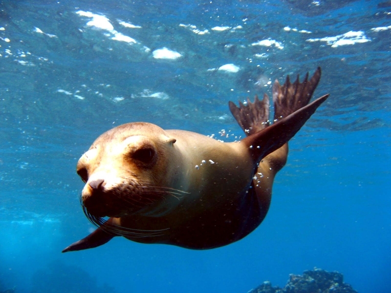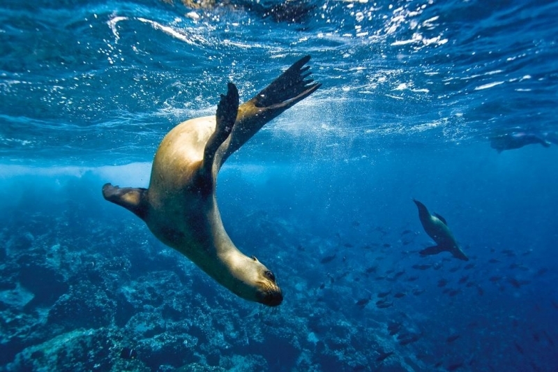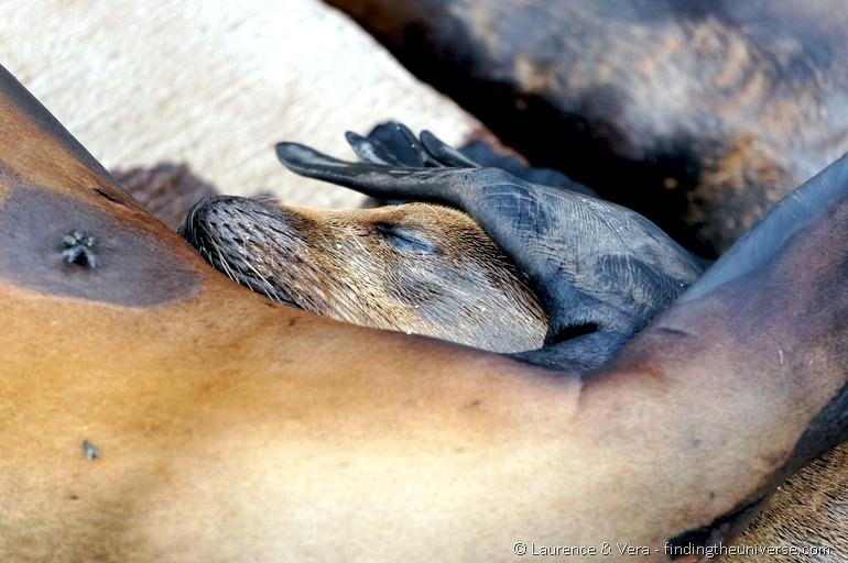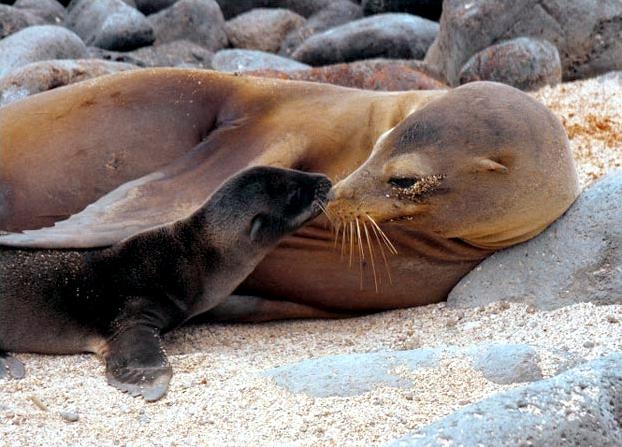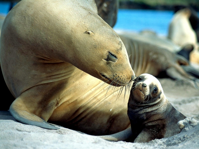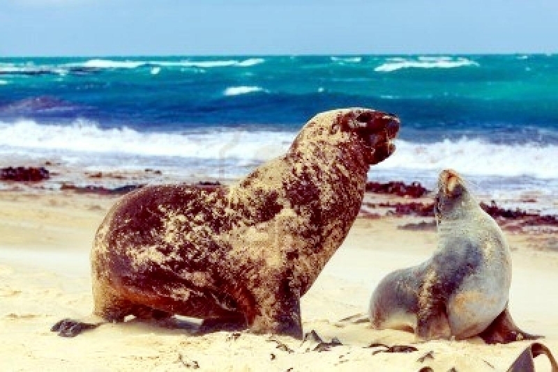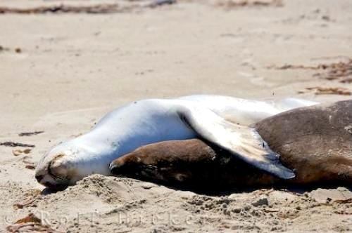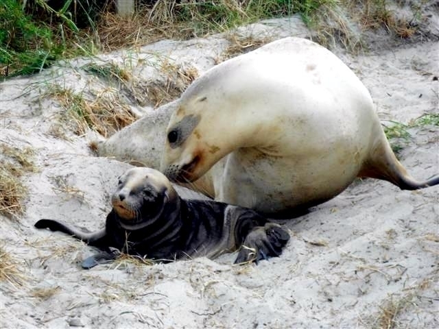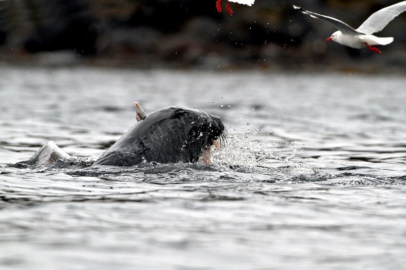 Migratory patterns of New Zealand Sea Lions are not well-known. They are opportunistic feeders with a diet of cephalopods, crabs, crayfish and fish. Adults are able to dive repeatedly to 300 meters and have been known to dive to over 600 meters. They have been known to travel up to 130 kilometers offshore during feeding trips. Males may live as long as 23 years, females as long as 18 years. They will eat penguins and adult male New Zealand Sea Lions have been observed feeding on New Zealand Sea Lion pups. Great White Sharks & Killer Whales prey on adults and pups. Females sexually mature at 3-4 years of age, males at 5 years, however males do not begin breeding until at least 8 years of age. Breeding season takes place between November and January. Pups are born measuring 70-100 centimeters in length, weighing 7.9 kilograms. Bulls begin arriving in November to fight for territory before the females arrive a few weeks later. Successful New Zealand Sea Lion bulls establish territories consisting of between 8-25 females. The females give birth shortly after arriving, then mate 7 to 10 days later. Pups are born with a thick coat of light to dark brown fur. About 10-14 days after a pup is born, females return to sea to feed then return to land for 2-3 days to nurse. This feeding cycle continues for about 8-12 months. At 2-3 weeks of age, New Zealand Sea Lion pups begin to swim. Adult males remain ashore and do not normally feed during breeding season. Molting follows breeding season in late February through to early May.