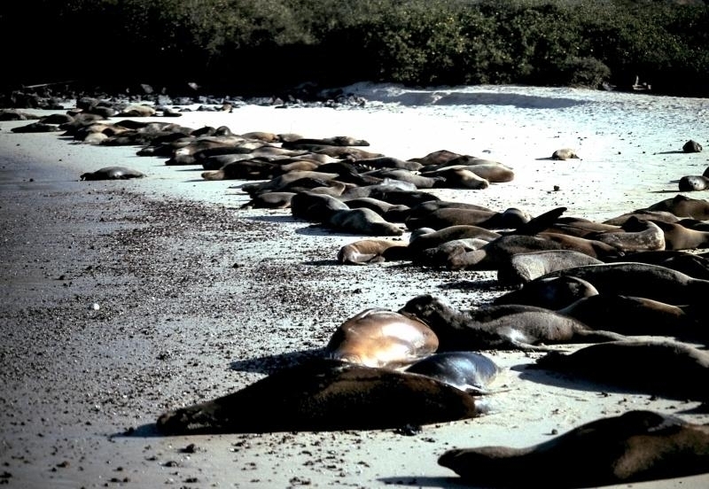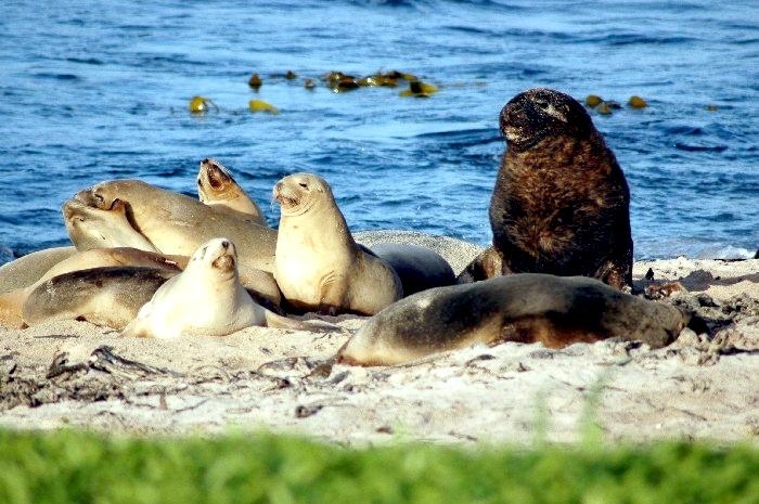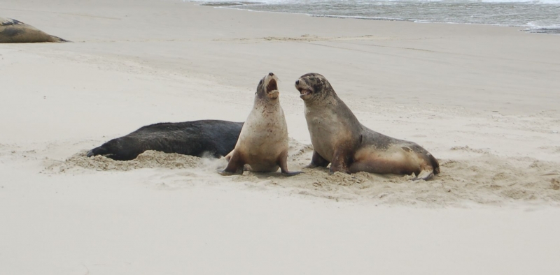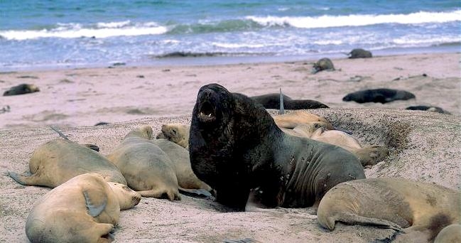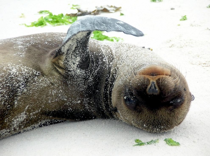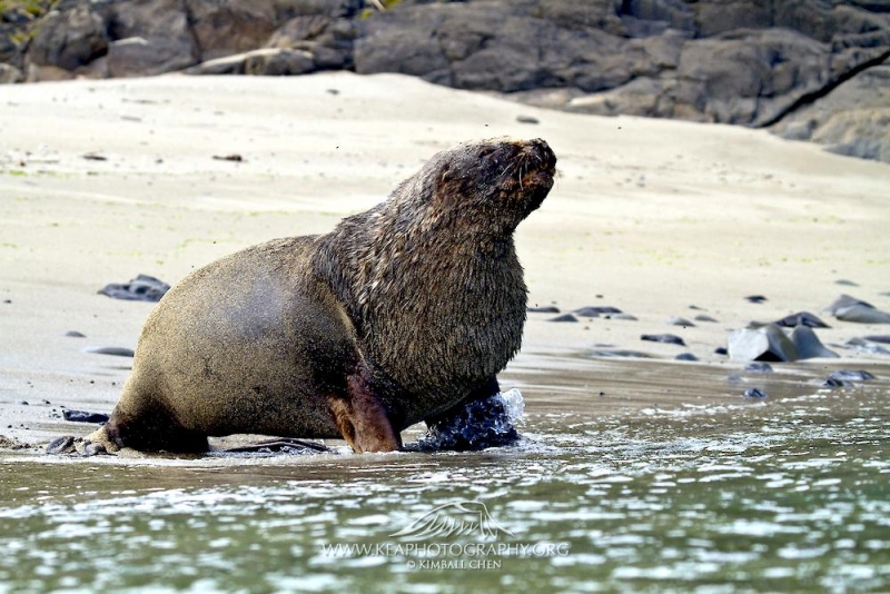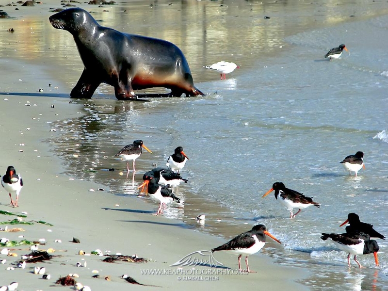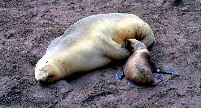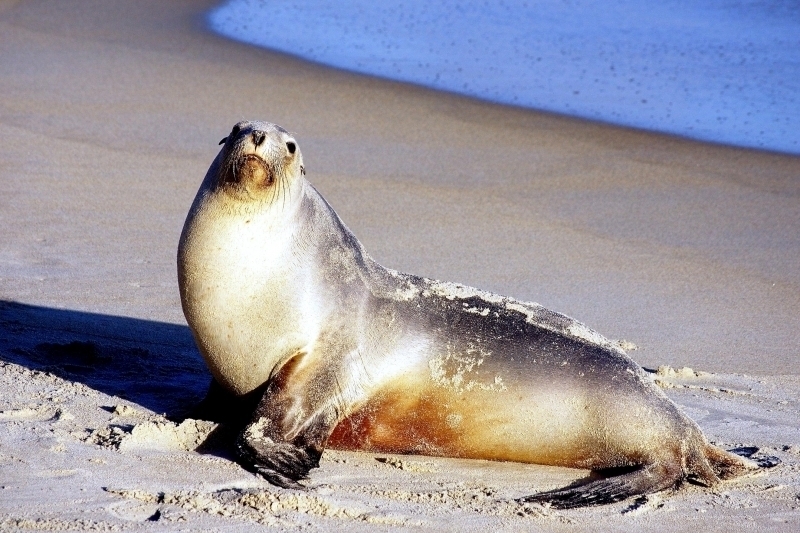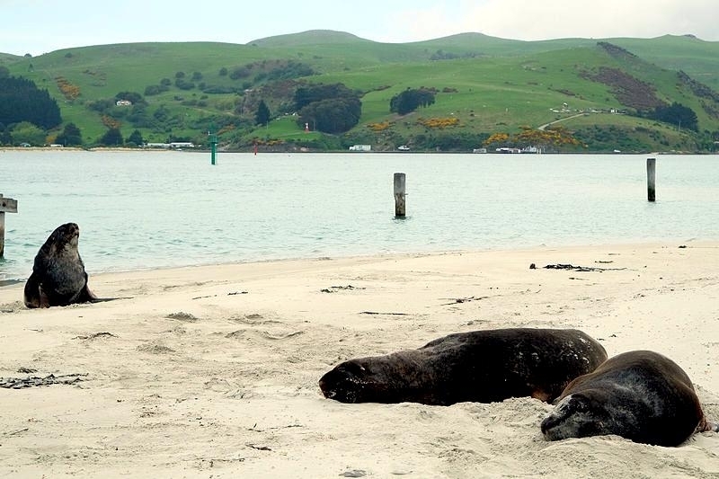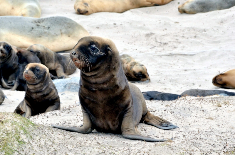 New Zealand Sea Lions also known as Hooker’s Sea Lions and “whakahao” in Māori, the New Zealand native people, are one of the rarest and most endangered of the pinniped family. Males measure between 2.0-3.25 meters in length and weigh 300-450 kilograms, while adult females measure 1.6-2 meters in length and weigh up to 160 kilograms. Adult females are a creamy-gray color and males are typically dark brown to black. New Zealand Sea Lions breed almost exclusively on New Zealand’s sub-antarctic islands, primarily on Dundas Island in the Auckland Islands where 3 colonies make up 95% of the total pup production that are less than 7 kilometers apart. They haul-out between the Australian sub-antarctic Macquarie Island and the southeast coast of South Island of New Zealand. Individuals are also occasionally seen on New Zealand’s North Island. Prior to a mass mortality of New Zealand Sea Lions in 1998, the total population was estimated at 12,000-14,000. New Zealand Sea Lions prefer sandy beaches for both haul-out & breeding. They often wonder inland, sometimes as far as 2 kilometers for reasons currently unknown.