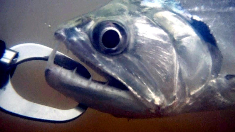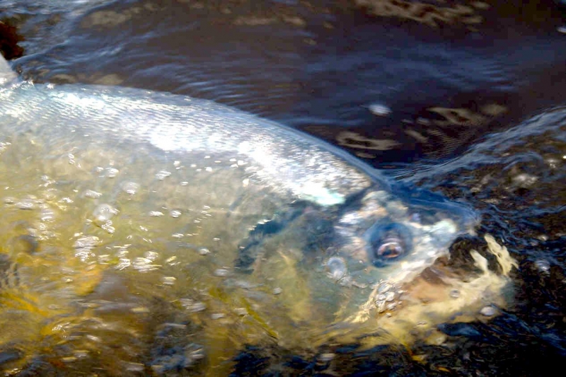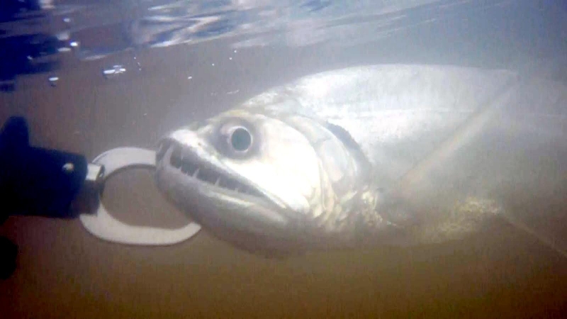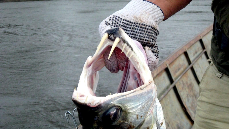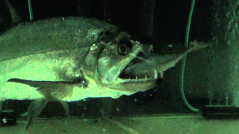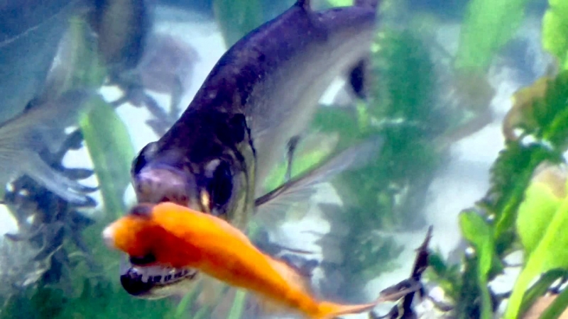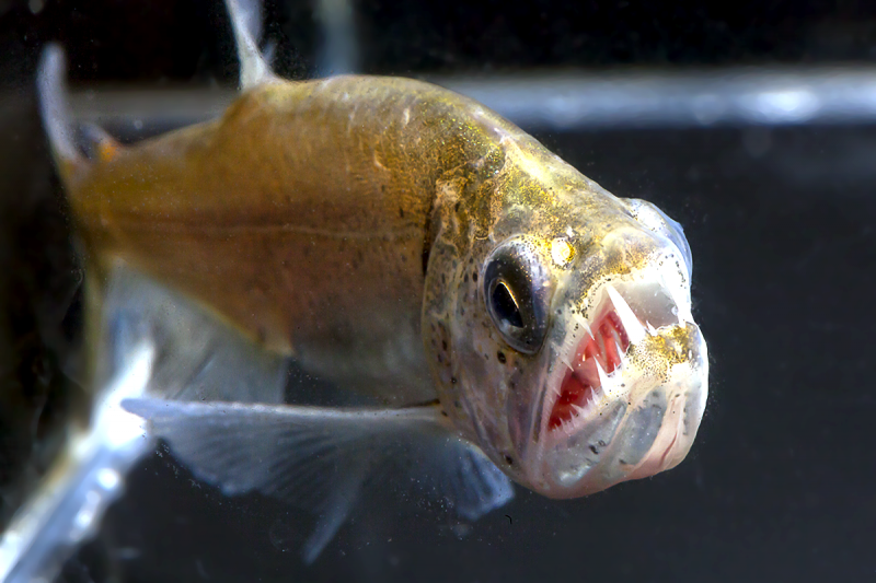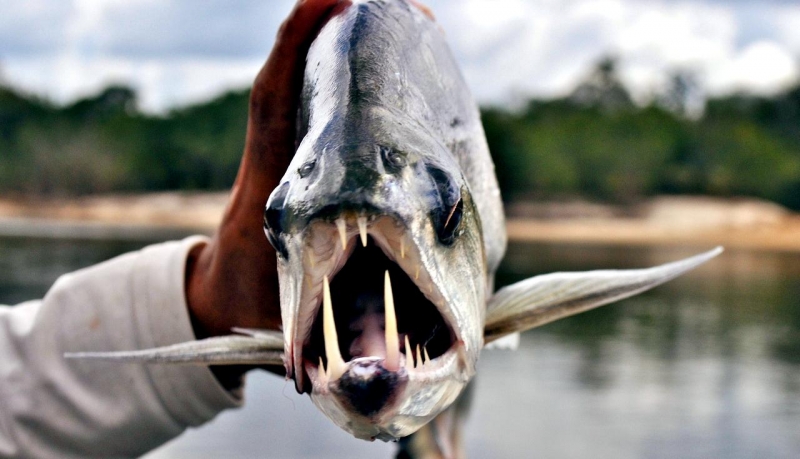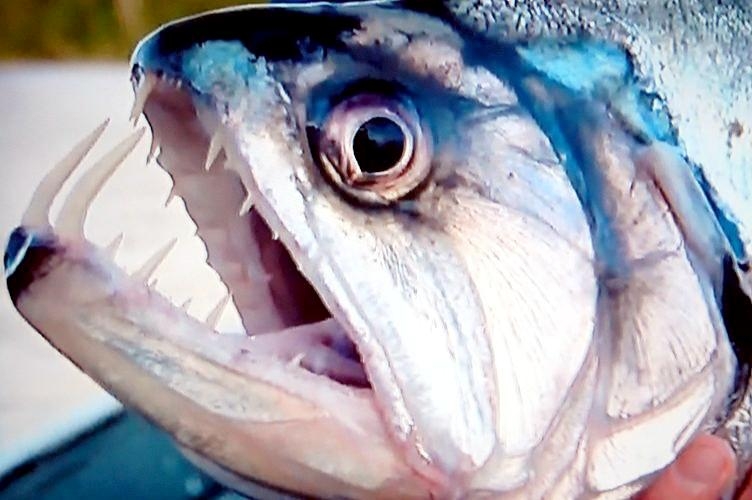 Anything with the name “Vampire Fish” should automatically be recognized as scary and the Payara is no exception. They are absolutely ferocious predators, capable of devouring fish up to half their own body size. Given that they can grow up to 1.2 meters (4 feet) long, this is no mean feat. A large part of their diet is made up of Red & Black Piranhas, which should give you some idea of how tough these fanged fiends can be. They get their name from the 2 tusks that sprout from their lower jaw, which can grow up to 15 centimeters (6 inches) long and which they use to literally impale their prey after viciously lunging at them. Payara fangs are so big in fact, that they have special holes in their upper jaw to avoid impaling themselves. Payaras are better described as silver missiles with an attitude. They literally hit any bait and keep running like an express train on steroids. They have a salmon-like body, complete with an adipose fin but a stronger demeanor and a face full of impressive daggers for teeth, in particular 2 huge fangs growing from their lower laws that fit into conical nasal slots in their upper jaws.