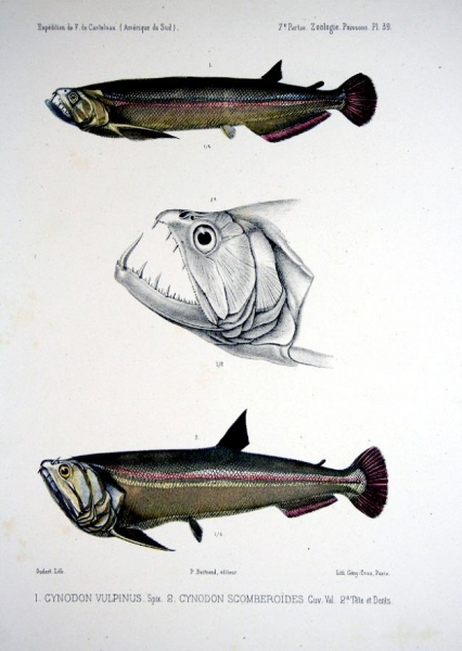 Payaras sport a uniform, bright silver color along their flanks with an olive back and an orange & black tail. They normally impale their victims with their over-sized bottom canine teeth and streak away. Their usual prey are anything from a third to a half of their own length. Payaras are found wherever there is current, either along a bank, off points, on the main rivers or even in submerged trees. The Payara is a little-known species of rare game fish that can be found living in the Orinoco River of Venezuela and the Amazon River basin. They are an extremely predatory species as well as cannibalistic. Payaras can eat fish that are half their own body size, but their diet may include smaller fish, however it consists mainly of Payaras using their sharp fangs to impale them with. This fish is popular among sport fishers because it is considered to be one of the fiercest struggling freshwater fishes, putting up an impressive fight. This is due to its living & hunting in fast-moving water or rapids. While they grow to such great lengths in the wild, in captivity the Payara rarely grows to 12 inches in length and usually die mysteriously before they do. The greatest concentrations of Payara have been found at the Uraima Falls on the Paragua River in southeastern VenezuelaLake Guri in the same region and Venezuela’s Orinoco, Ventuari and Caura Rivers.