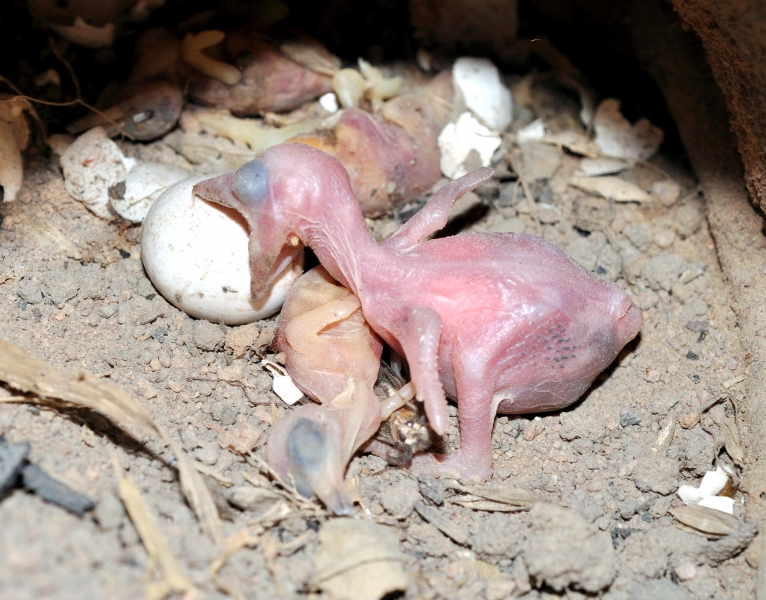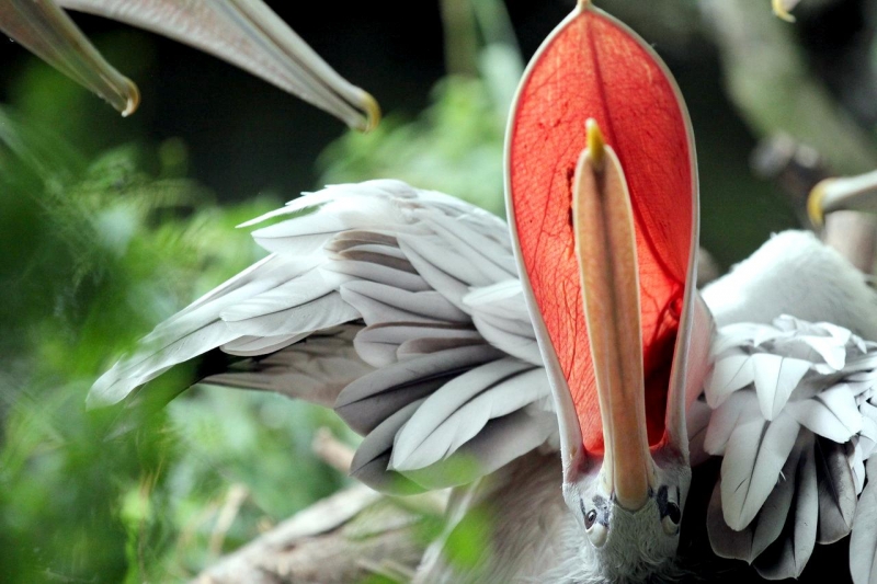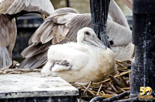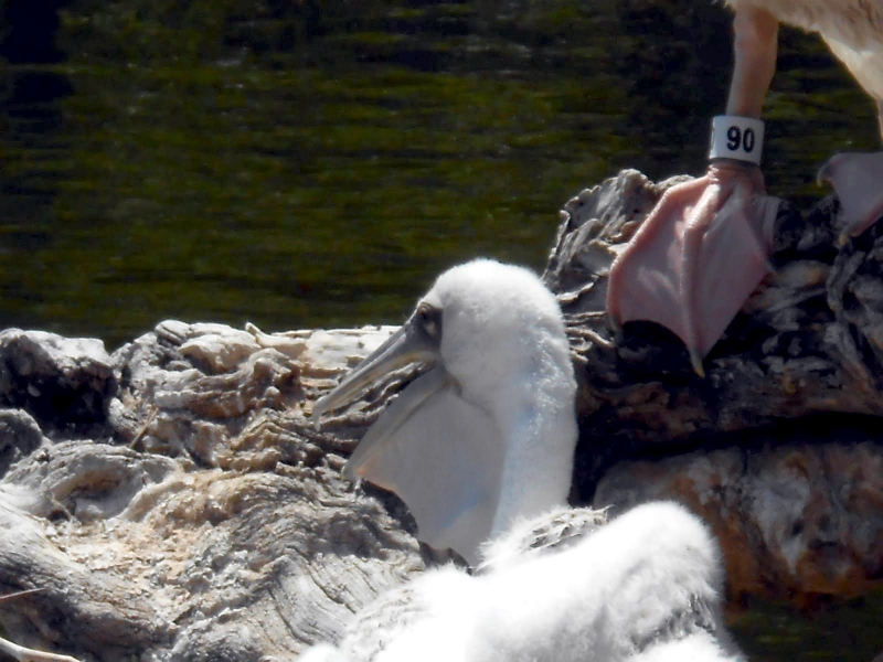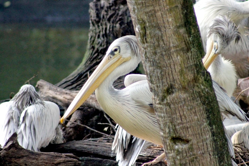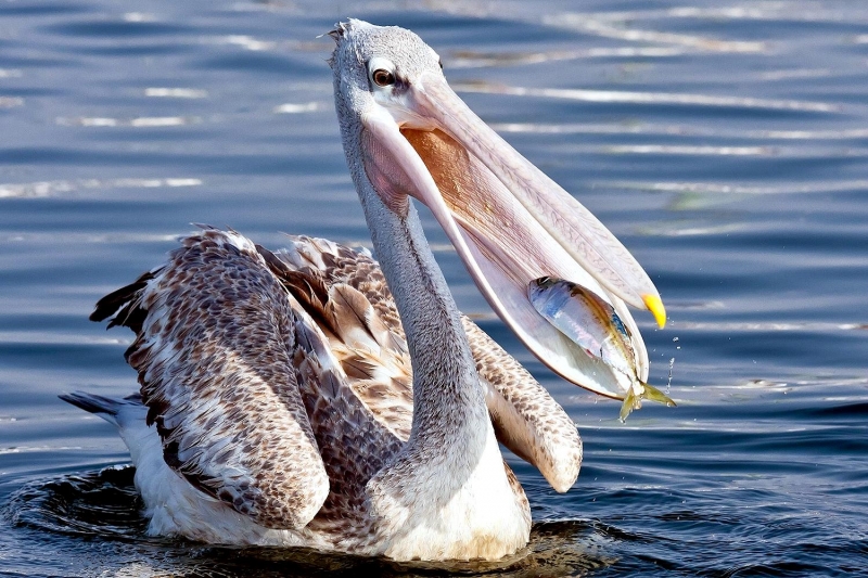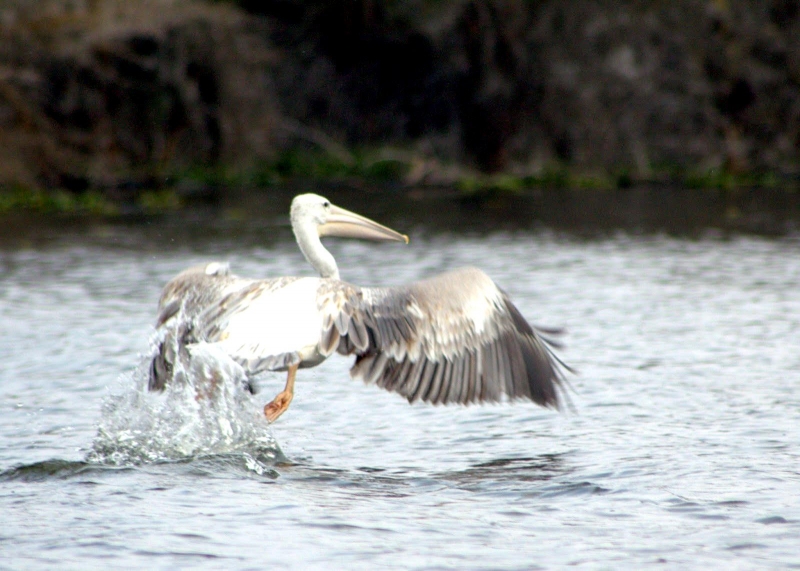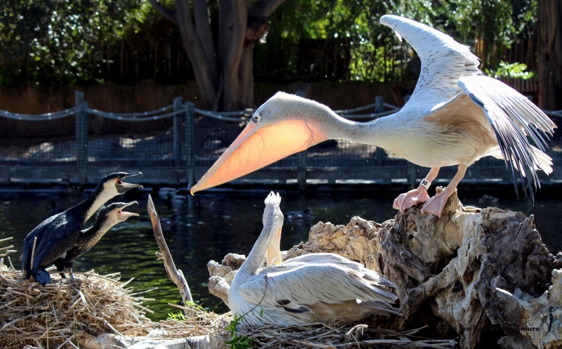 As their name suggests, the Pink-backed Pelican have a pink back. Most of their feathers are gray-white, though their breast & abdomen is also pink in color. Young birds are brown, with a slight pinkish tinge. These pelicans feed mostly in the morning & evening. The name “pelican” comes from the Ancient Greek word pelekan (πελεκάν), which is itself derived from the word pelekys (πέλεκυς) meaning “axe”. Pink-backed Pelicans live in a wide range of watery habitats but seem to prefer quiet areas with slow-moving water and will breed throughout the year. They build nests of sticks in the trees, which are often so close together that the nests touch. Such tree colonies can contain 20 to 500 pairs. The females lay 1 to 3 eggs, but chick mortality is often high due to sibling aggression. They fledge after 84 days, but will continue to be fed by their parents for some time after this. Pairs will reuse nests from the previous year if they are in a good state of repair. The nest is a large heap of sticks, into which 2-3 large white eggs are laid. The chicks feed by plunging their heads deep into the adult’s pouch and taking the partially digested regurgitated fish. The Pink-backed Pelican is classified as Least Concern and does not qualify for a more at risk category.
