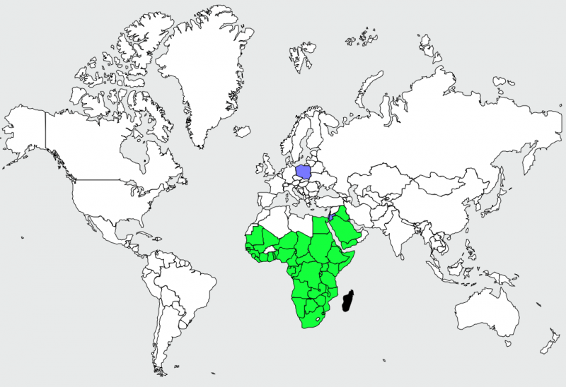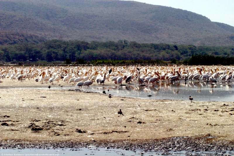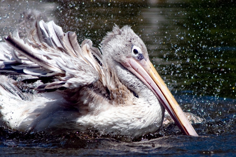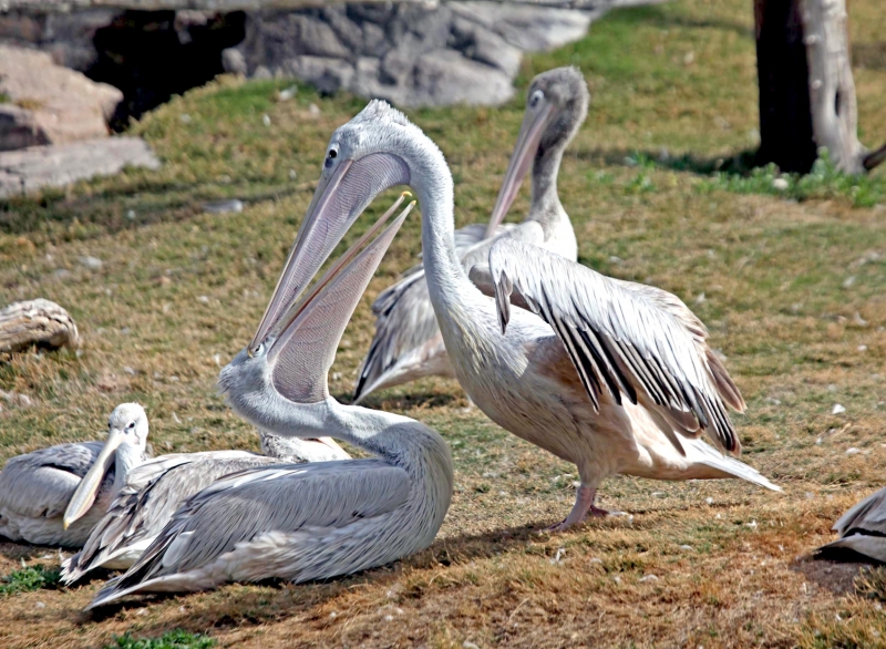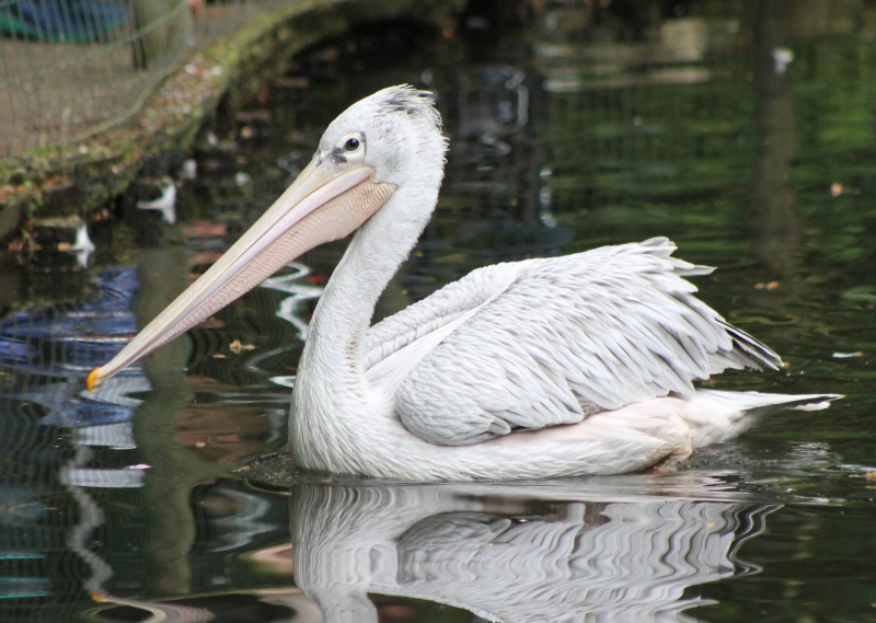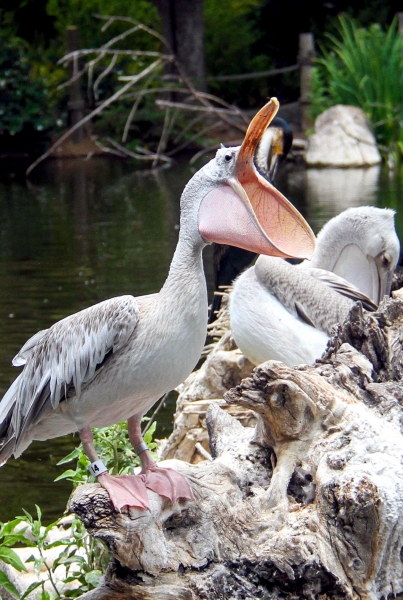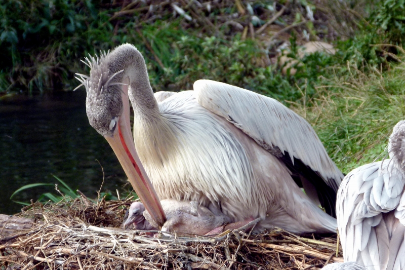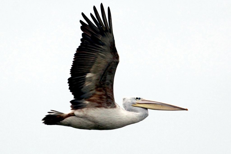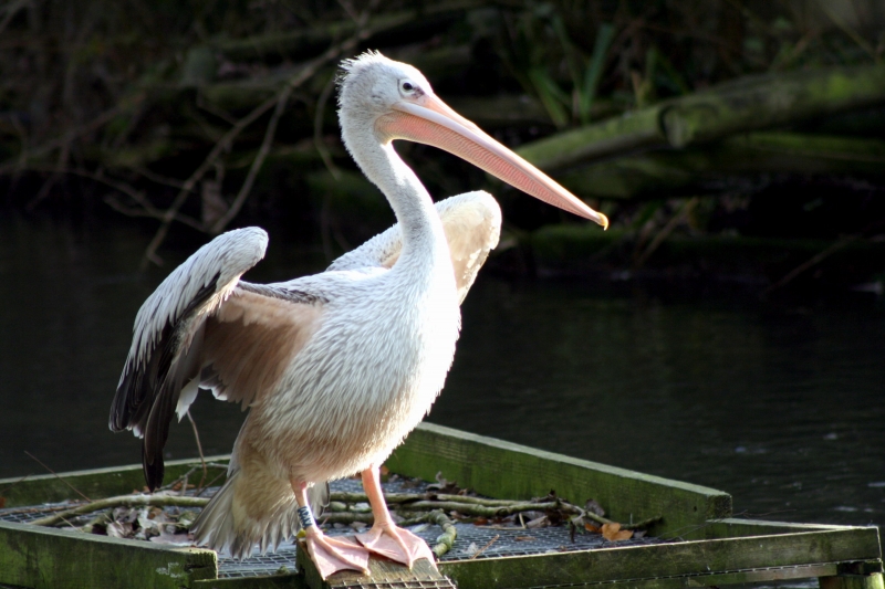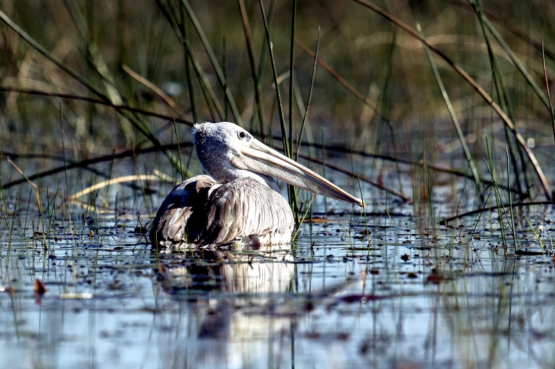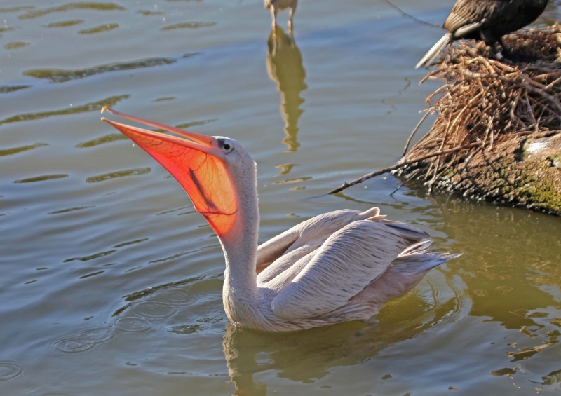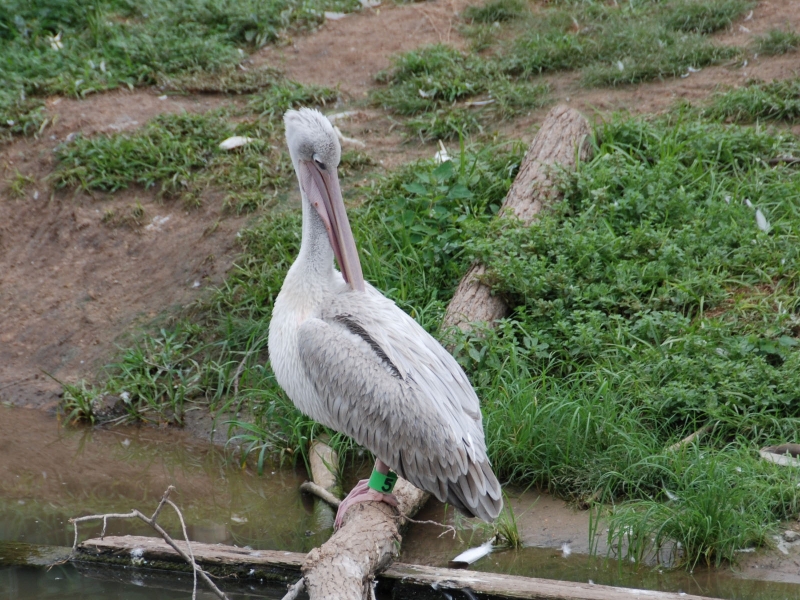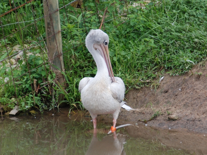 The Pink-backed Pelican is a member of the pelican family of birds. It is a resident breeder in Africa, southern Arabia and apparently is extinct in Madagascar in swamps & shallow lakes. The nest is a large heap of sticks, into which 2-3 large white eggs are laid. The chicks feed by plunging their heads deep into the adult’s pouch and taking the partially digested regurgitated fish. This is a small pelican, but the wingspan is still around 2.4 meters. Pink-backed Pelicans only eat fish. Large individuals can eat fish up to 400 grams in weight, but fish between 80-290 grams are more usual. They will eat 900-1,200 grams each day. They move around in groups, but hunt individually. This species has a very large distribution and so is classed as Least Concern. They are very tolerant of disturbance by humans and are not seen as competition by fishermen as they hunt alone. Tree loss is a serious threat as they require trees to nest in. Pollution from pesticides in rivers is causing a build up of toxins in the Pink-backed Pelican’s fish stocks. These toxins can make breeding more difficult and may become a problem in the near future.