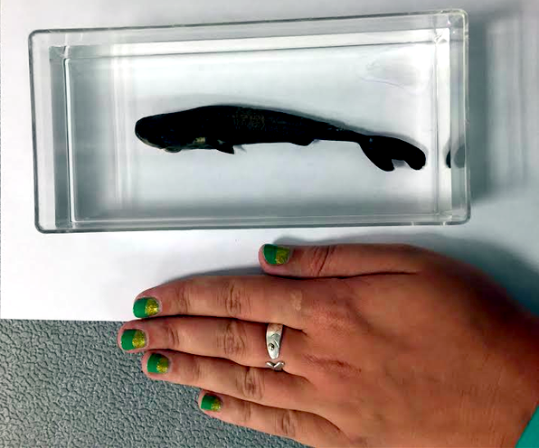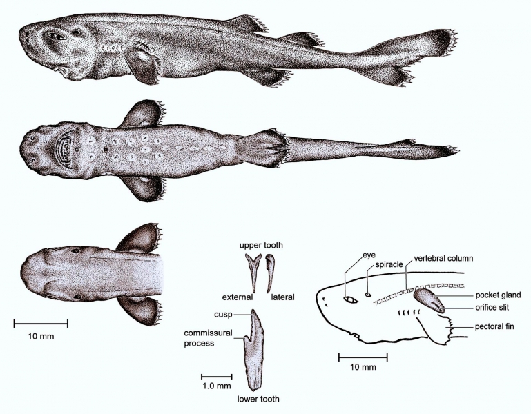 Even if you’re a die-hard animal lover who tunes in to every episode aired during “Shark Week,” you’d be forgiven for not knowing about the Pocket Shark. The very first one was found 36 years ago off the coast of Peru and since then, the species had never been seen again until now. According to a new study published in the journal Zootaxa, the second Pocket Shark ever to be seen has been discovered. It was found in a batch of fish collected as part of a National Oceanic & Atmospheric Administration (NOAA) study conducted in 2010, about 190 miles offshore Louisiana to study Sperm Whale feeding. Unfortunately, the Pocket Shark wasn’t found swimming in the sea. The fish obtained during the NOAA mission had been frozen and slowly sorted through by scientists. One of the clearest signs that the scientists had stumbled onto something different was the fact that the Pocket Shark had a “remarkable pocket gland with its large slit-like external opening located just above the pectoral fin”. Scientists are unsure about the pocket’s purpose but based on research from a similar species, they think it might be used to release pheromones. It’s common name comes about because of this unique pocket. The specimen found was clearly a young Pocket Shark, measuring only 5.5 inches long.