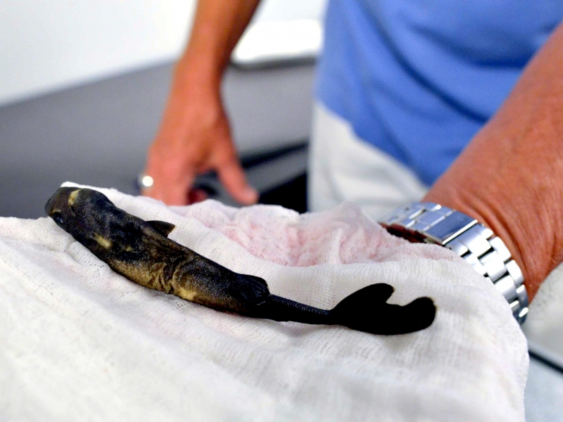 The last Pocket Shark found was a female who clocked in at about 17 inches along. Adding to the limited body of research about this remarkable animal, the Pocket Shark’s belly had “ventral abdominal photophore agglomerations” which in non-science-speak, means it had a grouping of light-emitting organs on its underside. Upon running tests on the shy species, it was determined that the Pocket Shark’s closest relative was the Cookie Cutter Shark. Like those sharks, the researchers theorize that in addition to eating smaller animals whole, the Pocket Shark might also feed by chewing out plugs of meat from larger creatures. This record of such an unusual and extremely rare fish is exciting, but its also an important reminder that we still have much to learn about the species that inhabit our oceans.