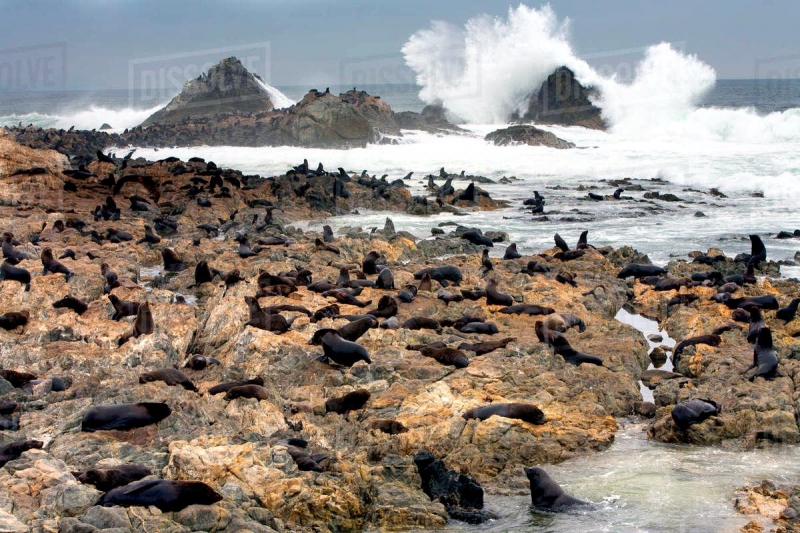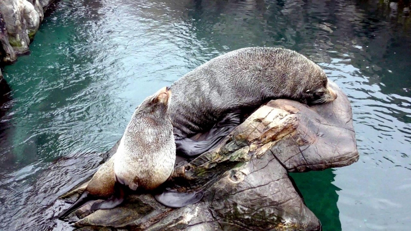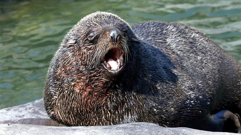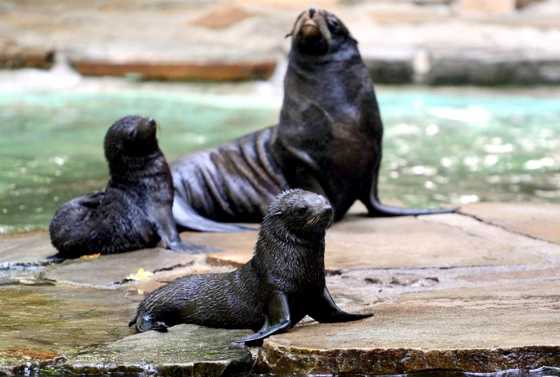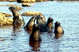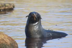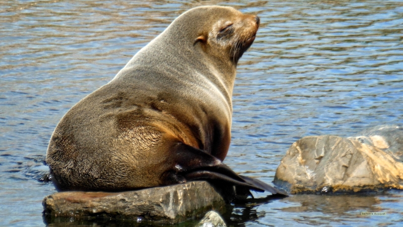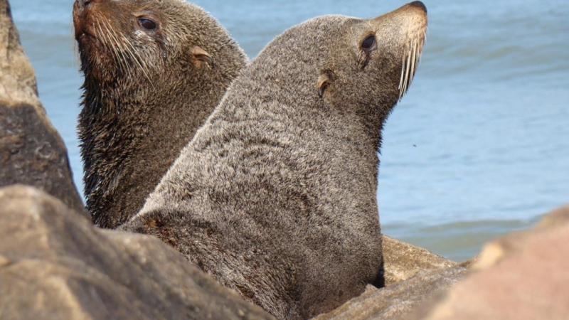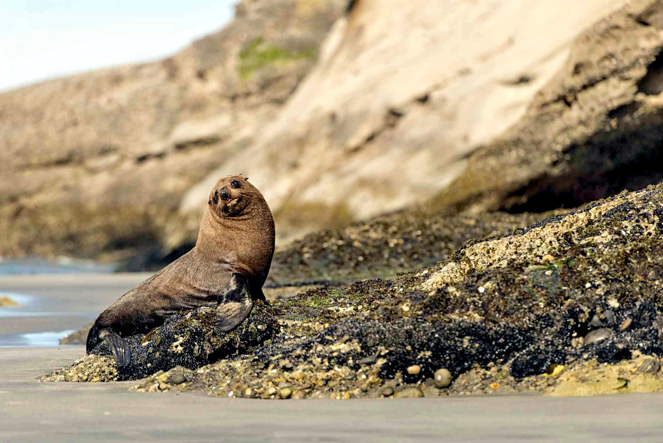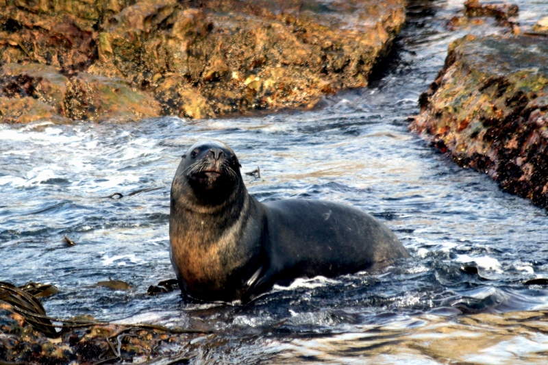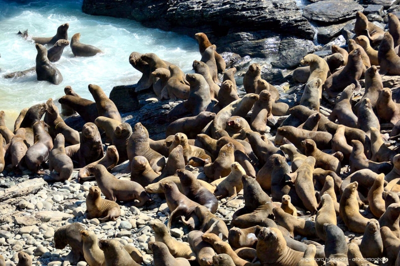 South American Fur Seals are members of the family that sea lions belong to Otariidae, meaning eared seals. On land they are more agile than the ‘earless’ seals, due to being able to move their back limbs forward under, their body raising it as they move. Males & females differ in appearance, as the male is much larger and heavier, having a mane of long hair over its thick neck & shoulders. Adults are blackish-gray and sometimes have a slightly grizzled appearance. Females and sub-adult males are dark brown to grayish-black and have paler underparts. The South American Fur Seal as its common name suggests, occurs along both the Pacific & Atlantic coasts of South America and has a discontinuous distribution that runs from Peru to Chile, as well as from southern Brazil to Tierra del Fuego and then around the Falkland Islands. Most are concentrated on Uruguay’s coast and they are also sometimes reported outside of their normal range, off the coast of Chile in the Juan Fernández Islands and in Colombia. These animals breed on land and colonies are generally found in caves, on rocky coasts, on ledges above the shorelines or in areas that are strewn with boulders. This species’ distribution at sea is little known, but they are thought to primarily occur in seas around the coast and above the continental shelf and slope, though they sometimes travel to over 600 km offshore. South American fur seals are social animals and live alongside each other in rookeries that are along the shore. These seals often fish during the night in groups. Most of the time they spend in the water swimming however, they live on land during the breeding season. Although seasonal movements of males & juvenile seals are not well understood, most females stay near the breeding grounds during the year. At sea, this species is often seen resting or traveling in groups, spending a lot of time grooming when at rest at the surface.