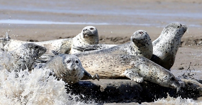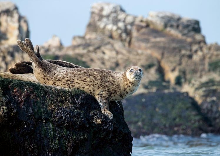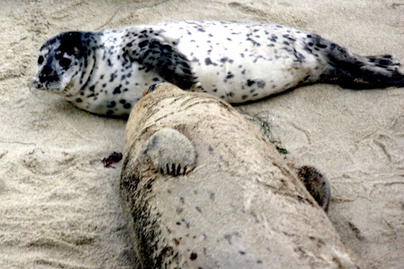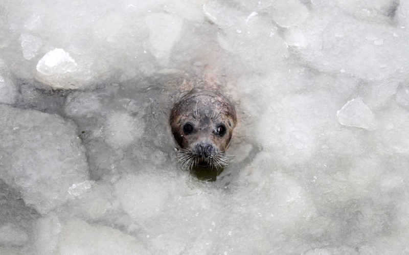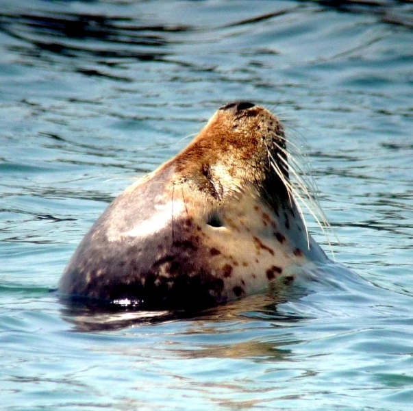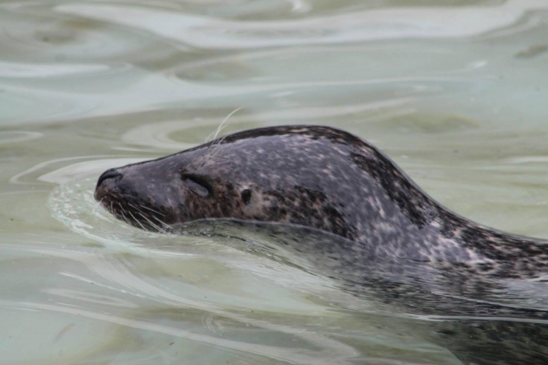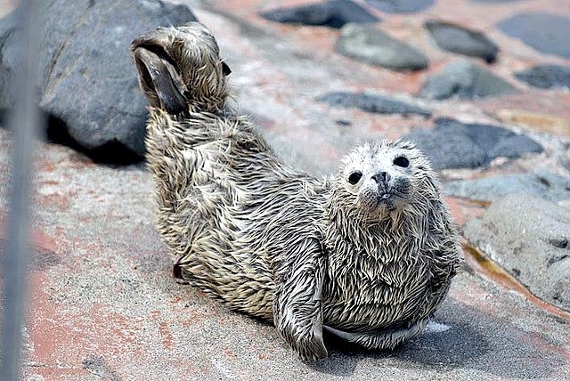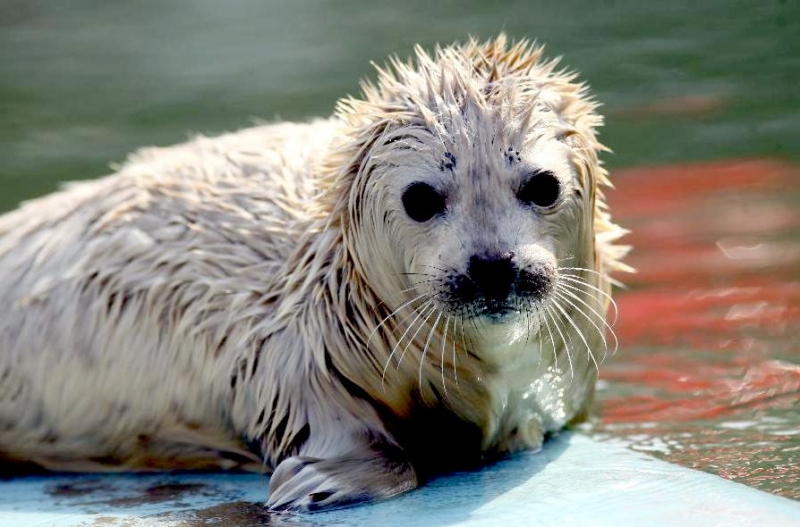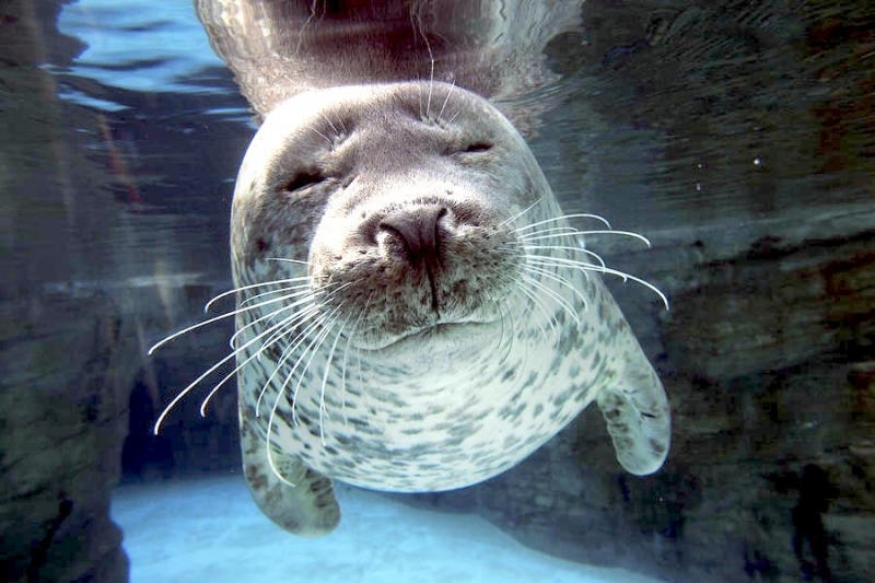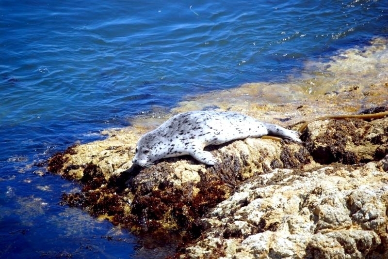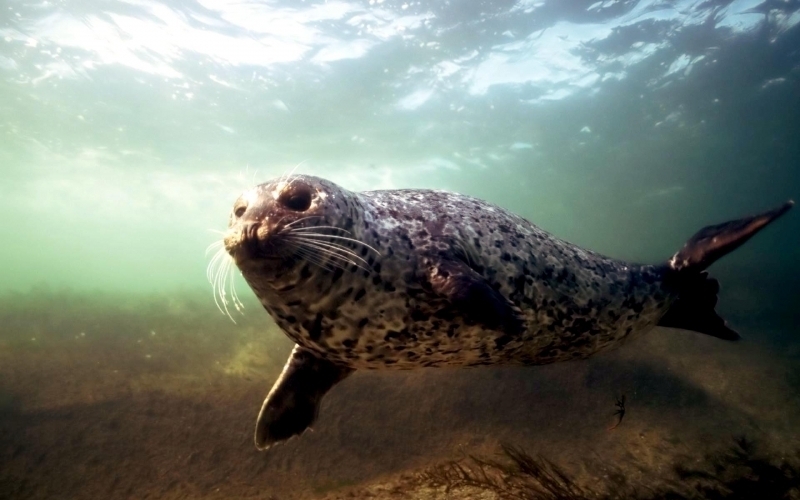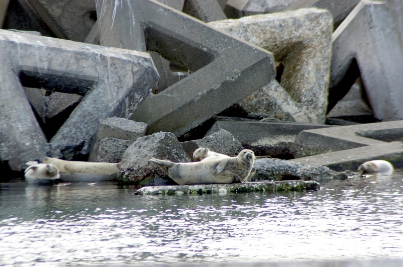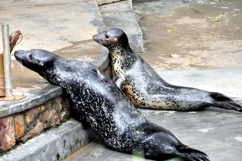 Spotted Seals vary in size among their different populations. On average, adult males measure 1.5-2.1 meters in length and weigh 85-150 kilograms and adult females measure 1.4-1.7 meters in length and weigh 65-115 kilograms. There is also variation in the coloring of adult coats, but generally Spotted Seals are silvery-gray on their ventral (under) sides and darker gray on their backs with dark spotted patterns. Spotted Seals can live to at least 35 years of age. They are closely related to Harbor Seals and often shares the same habitat. There is also some evidence of inter-breeding between these 2 species. Spotted Seals are found around the ice and waters of the north Pacific Ocean and adjacent seas including the continental shelf of the Beaufort, Chukchi, Bering and Okhotsk Seas and south to the northern Huanghai Sea and western Sea of Japan. Recent population data is unavailable and estimates from the 1970’s of 335,000-450,000 Spotted Seals are likely inflated. A more recent survey of the Okhotsk Sea in 1986 and 1987 estimated 50,000 seals. Spotted Seals gather to molt in late spring-early summer among the ice remnants or on land when as the ice retreats. Following molting, Spotted Seals in the Okhotsk Sea and Bering Sea disperse, some migrate north to the Beaufort Sea & Chukchi Sea, others to the south & east. Little data exist on the distribution & movements of Spotted Seals during the colder months although it is likely though that they remain in the water during the winter.