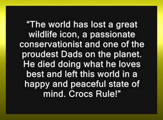 LISA MILLAR: Mr. Stainton says the man who was known around the world as the Crocodile Hunter ploughed everything he had into wildlife conservation and had just spent the best month of his life researching saltwater crocodiles on Cape York. But it was ironically not on land, but in the sea that the Crocodile Hunter came undone.