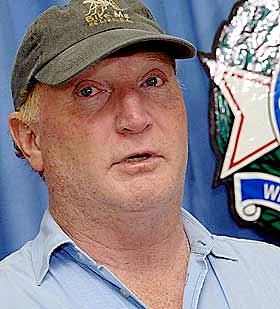 LISA MILLAR: Looking pale and upset, Steve Irwin’s long-time friend and business manager John Stainton joined the police media conference this morning in Cairns. He’d been on the boat with Mr. Irwin yesterday and they’d shared an early morning cup of tea, his friend telling him he’d never been happier. Now Mr. Stainton has had to watch the confronting footage of his friend’s death.
