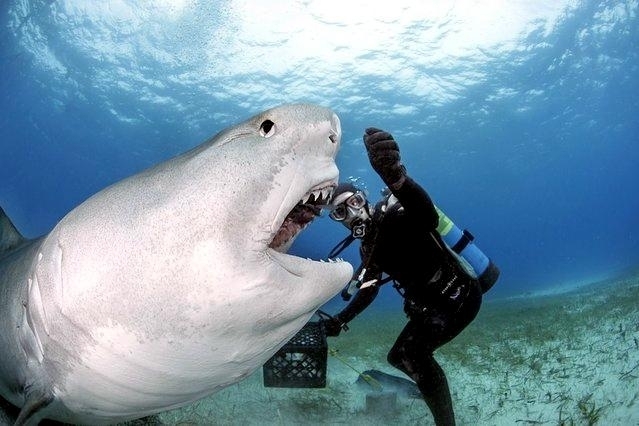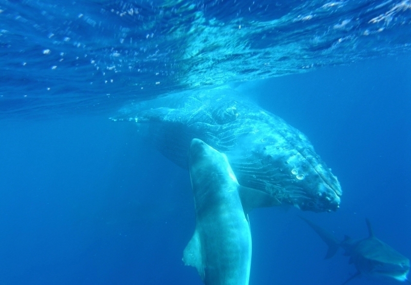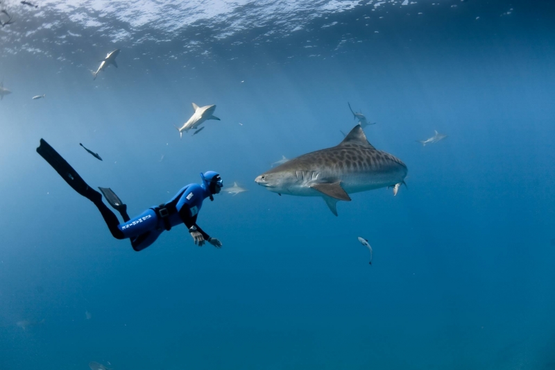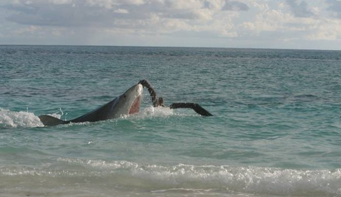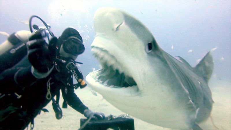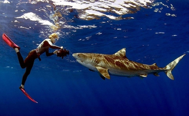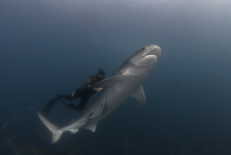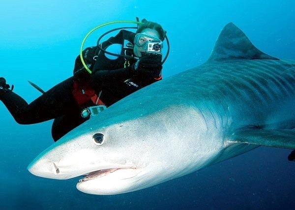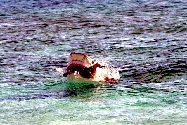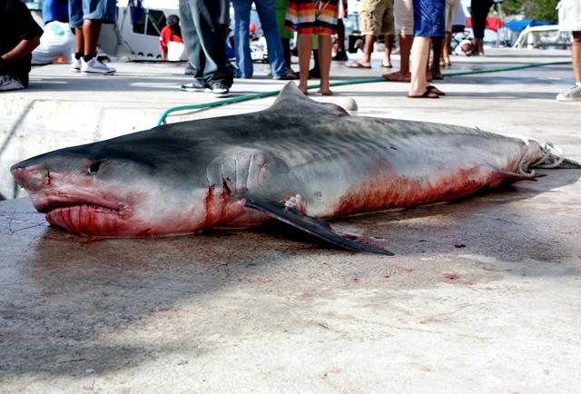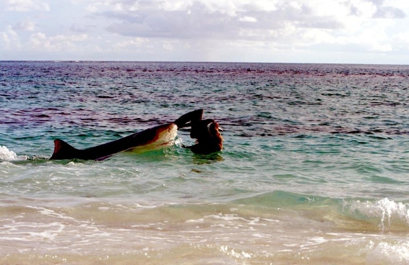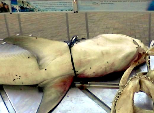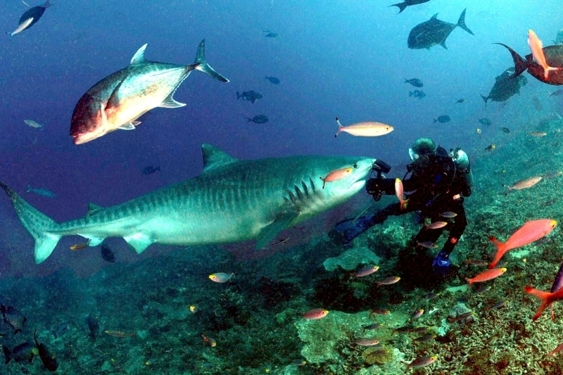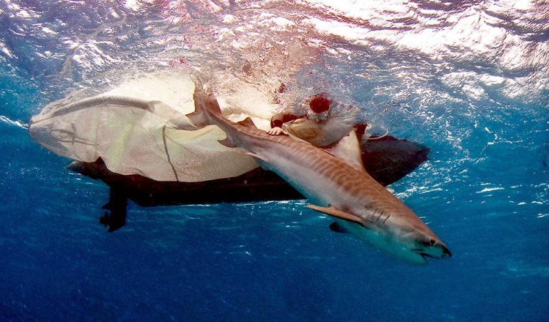 Tiger Sharks are ovoviviparous bearing between 10-82 pups per litter. Pups at birth measure between 0.5-1.05 meters. The pups are very slender with clearly defined vertical stripes which fade as they become adults. They grow quite slowly, which makes them vulnerable to declines in population due to over fishing. The eggs are retained within the body of the female in a brood chamber where the embryo develops, receiving nourishment from a yolk sac. This is the method of reproduction for the “live-bearing” fishes where pups hatch from egg capsules inside the mother’s uterus and are born soon afterward. Tiger Sharks are second only to the Great White Shark in the number of reported attacks on humans. Fortunately though, attacks are rare. In Hawaii, Tiger Sharks were responsible for several fatalities in the 1990’s, an average of one shark attack there per year. A low number considering the average number of drownings in Hawaii is 40. Its large size and voracious appetite, make the Tiger Shark an apex predator of the ocean. Because of their indiscriminate appetite, Tiger Sharks can be curious and aggressive towards humans in the water and therefore must be treated with extreme caution.