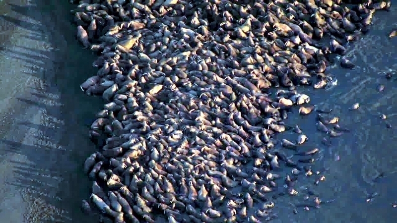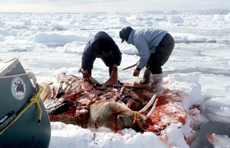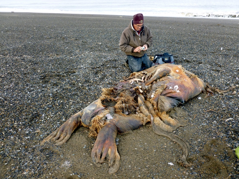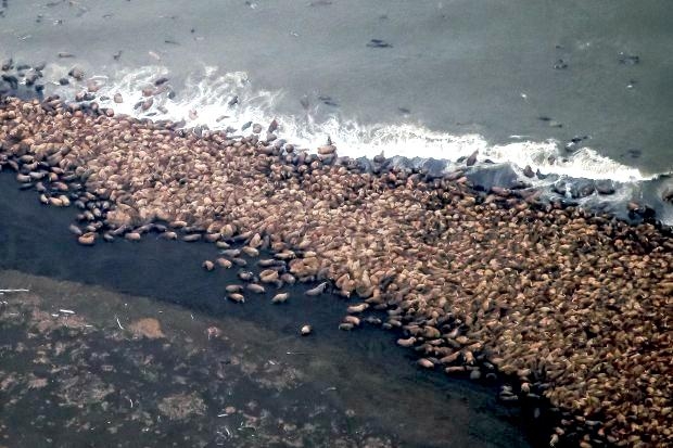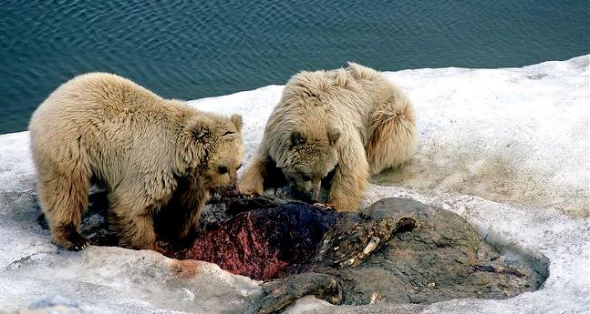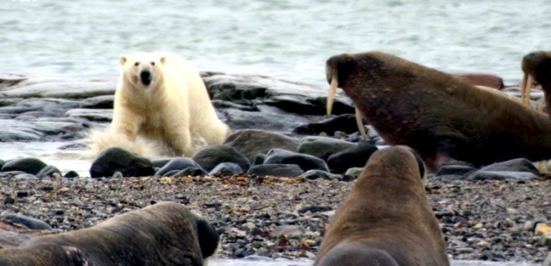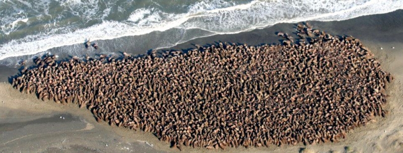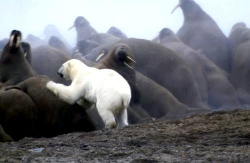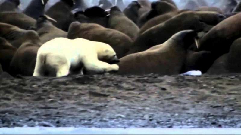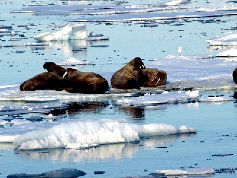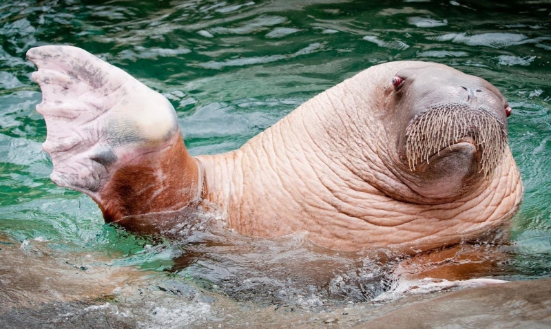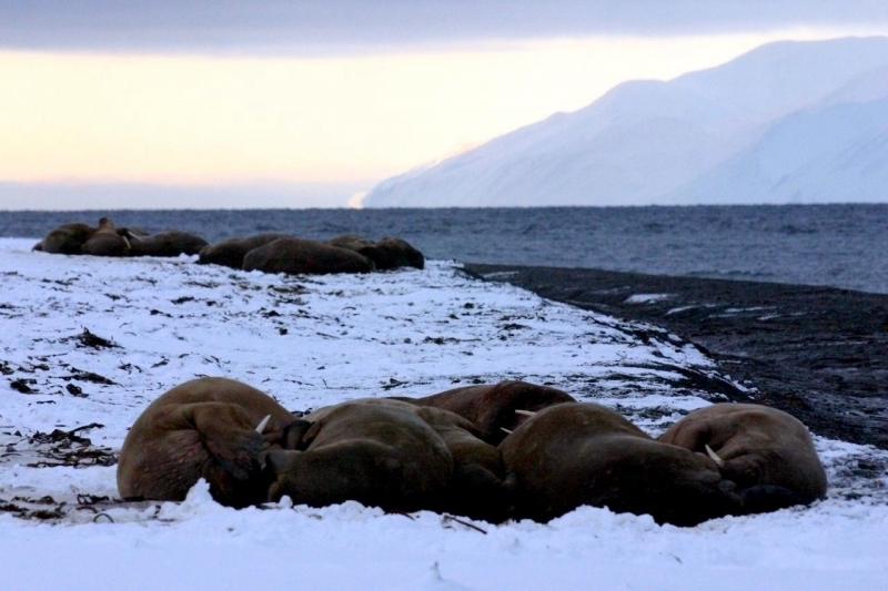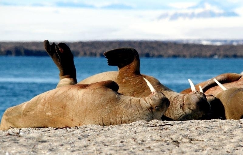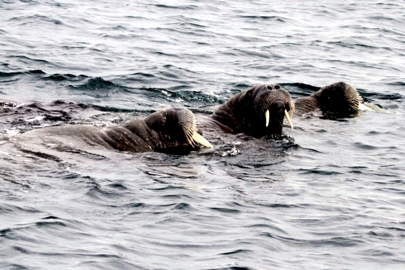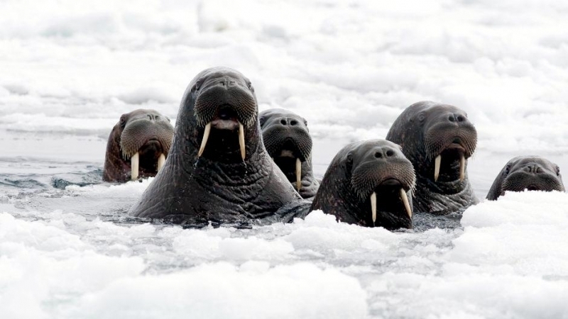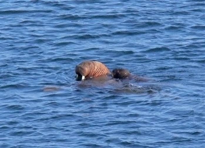 Due to their diet of small organisms, large quantities are required to sustain them. Each time a Walrus dives down to eat, they can consume up to 60 clams. Their dives for food usually last 5 to 20 minutes. Walruses can dive to depths of approximately 70 meters. Adults require 25 kilograms of small benthic organisms per day. Walruses occasionally eat bigger animals such as seals and some seabirds. Walrus predators include Killer Whales and Polar Bears. Adults use their giant tusks as a weapon to defend themselves. The young Walruses are more susceptible to predation. Humans are their main predator. Walruses forage mainly on mollusks and other benthic organisms. Sometimes parasites can get inside their intestines and the intestinal lining. In extreme cases this can cause death but usually it just causes pain, sickness and organ damage. The parasite Toxoplasma gondii, is found in Walruses and is acquired when eating bivalves. This parasite can cause Toxoplasmosis and results in death. Brucellosis causing parasites result in reproductive problems for Walruses. This can lead to stillbirths and can result in death to the parent as well. Walruses are extremely important to humans. Humans hunt them and use them for oil, ivory and their hides. Many centuries ago, the natives of Alaska, Canada and Russia hunted them for their meat & bones which were used to make tools. Population sizes of Walruses decreased greatly in the 18th century due to over-hunting. Through the years, governments from various countries have put restrictions on Walrus hunting. This has allowed the populations to rebound but they have never fully recovered. There are no known adverse effects of Walruses on humans.