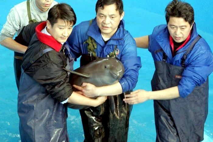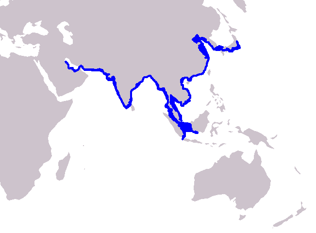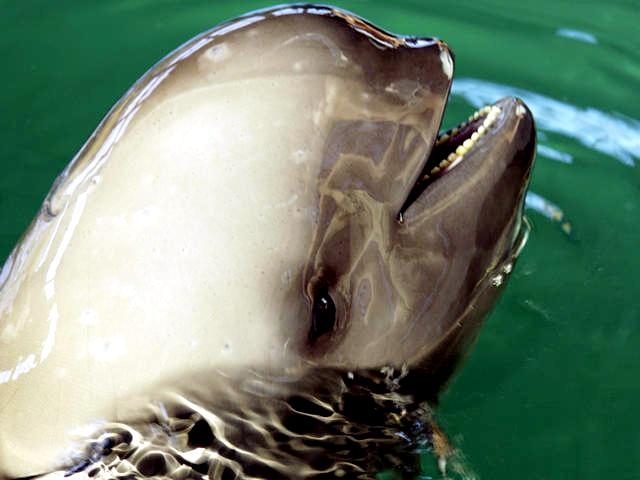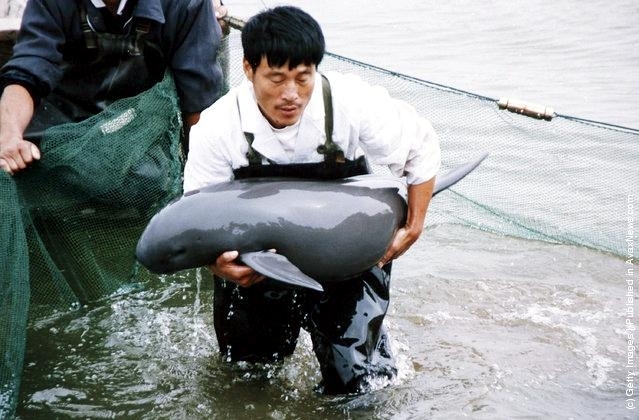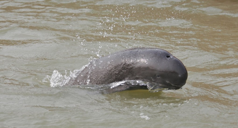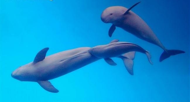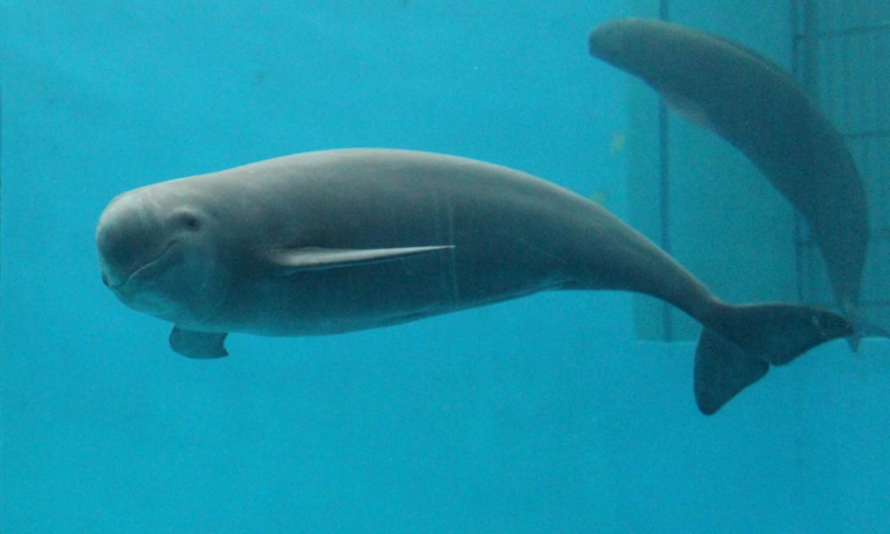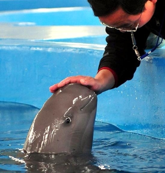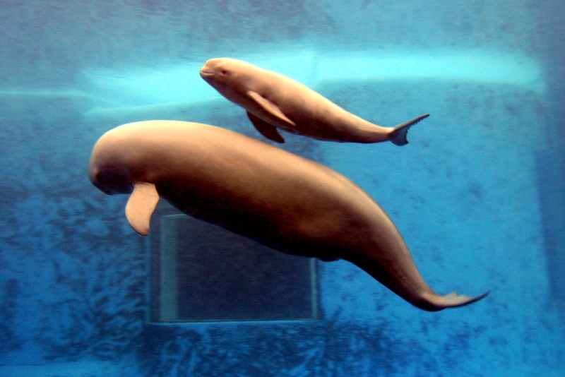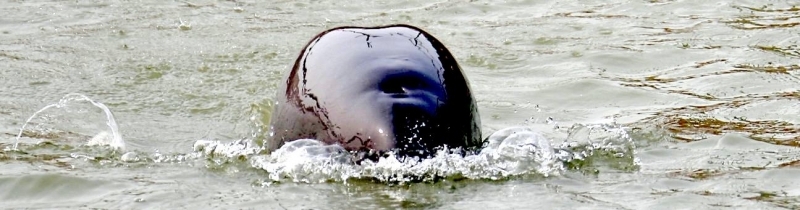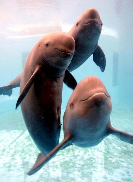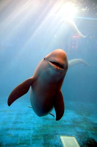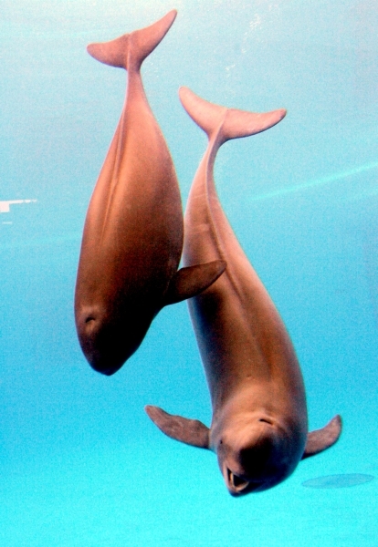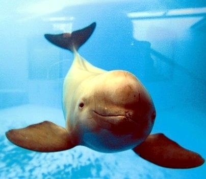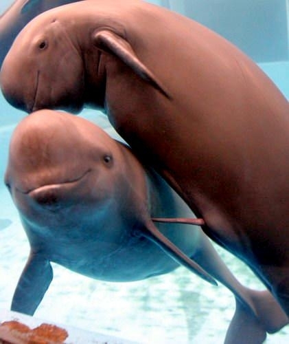 The Yangtze River Finless Porpoise is found in the coastal waters & rivers of Southeast Asia. It is concentrated in the eastern Indo-Pacific region and can be found from Pakistan to Korea, Japan, Borneo and Java. They live in both freshwater & saltwater habitats. It is found in shallow coastal waters such as the Sea of Japan as well as freshwater rivers like the Yangtze River in China. The Yangtze River Finless Porpoise is occasionally found in inland lakes which have been cut off from the ocean but are still saltwater and seem to prefer rocky promontories & strong currents. They are a small cetacean and grow to only 150-190 centimeters. It has a distinct eel-like shape due to its lack of dorsal fin and round, beak-less head. The jaw of contains 15-21 spade shaped teeth on each side of the upper and lower jaw.