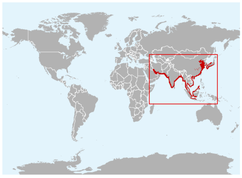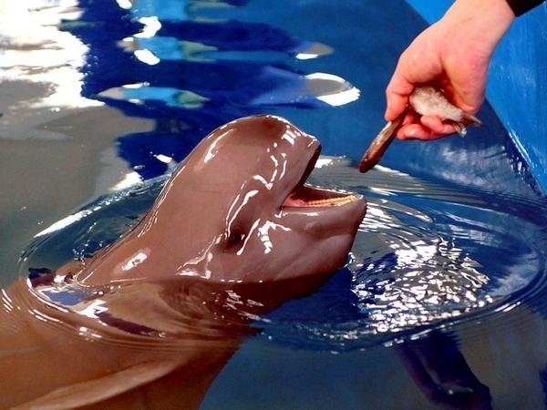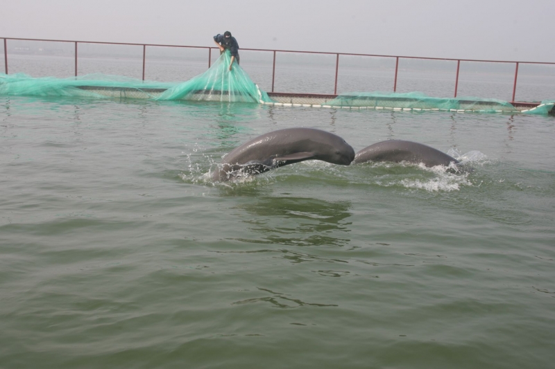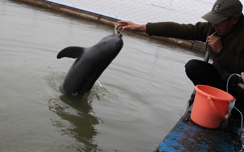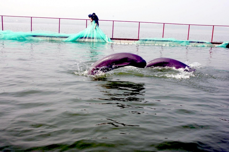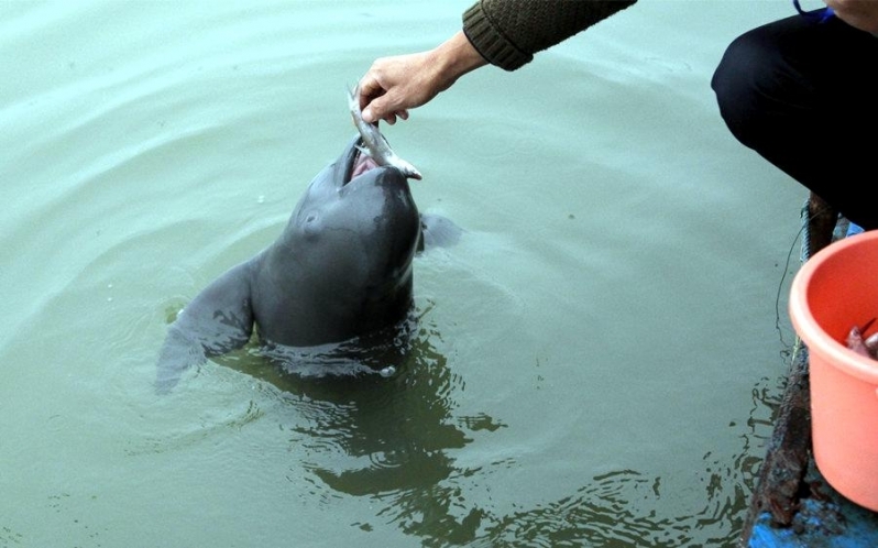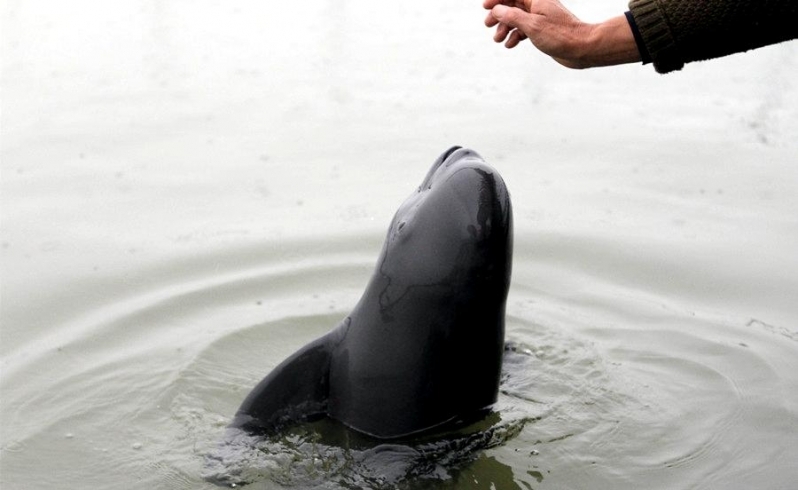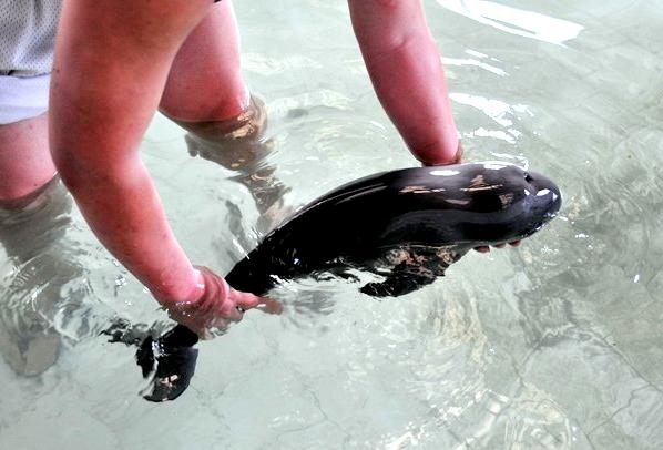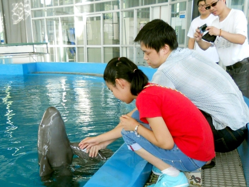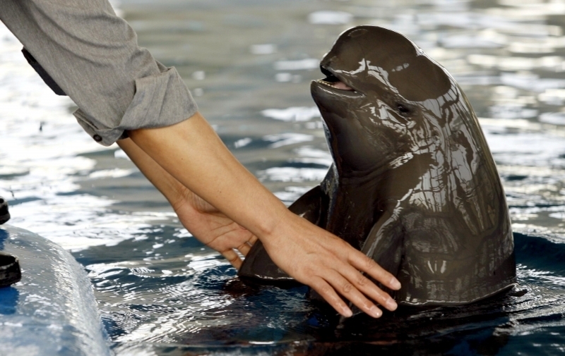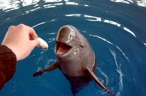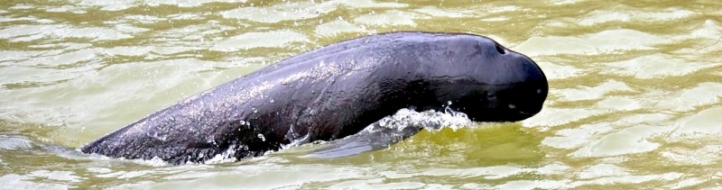 The Yangtze River Finless Porpoise is found in the coastal waters & rivers of Southeast Asia. It is concentrated in the eastern Indo-Pacific region and can be found from Pakistan to Korea, Japan, Borneo and Java. They live in both freshwater & saltwater habitats. It is found in shallow coastal waters such as the Sea of Japan as well as freshwater rivers like the Yangtze River in China. The Yangtze River Finless Porpoise is occasionally found in inland lakes which have been cut off from the ocean but are still saltwater and seem to prefer rocky promontories & strong currents. They are a small cetacean and grow to only 150-190 centimeters. It has a distinct eel-like shape due to its lack of dorsal fin and round, beak-less head. The jaw of contains 15-21 spade shaped teeth on each side of the upper and lower jaw.