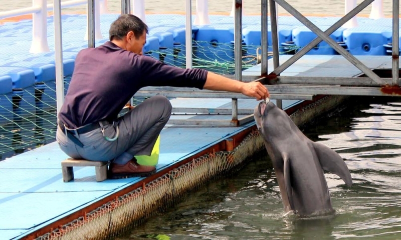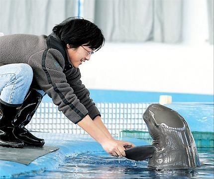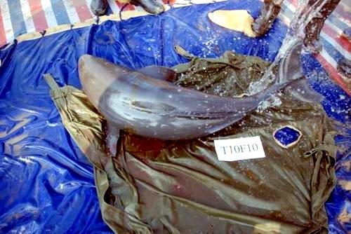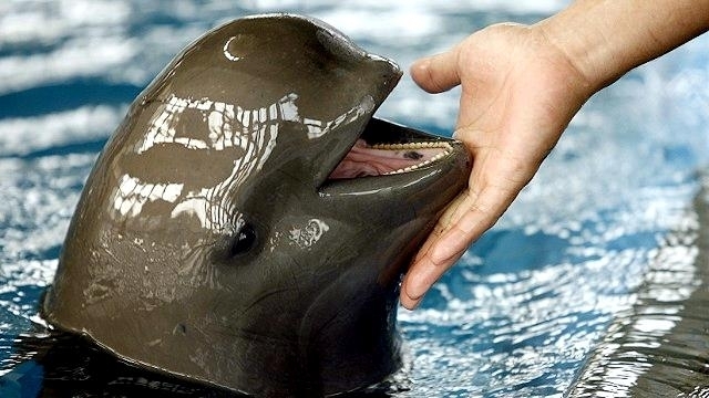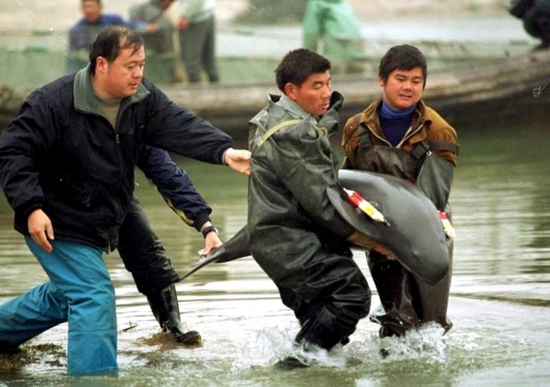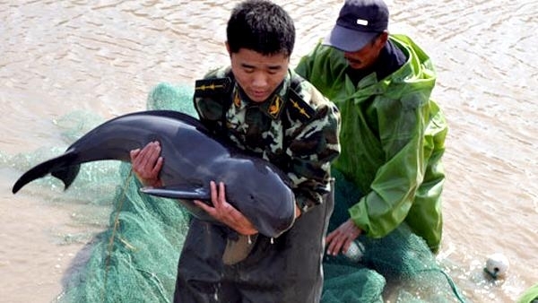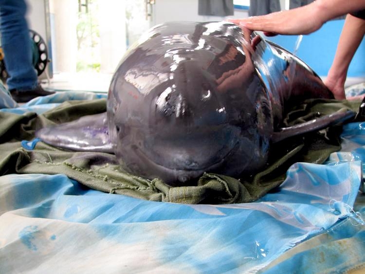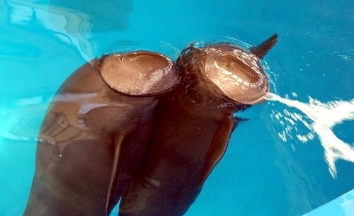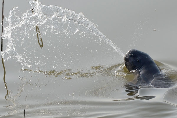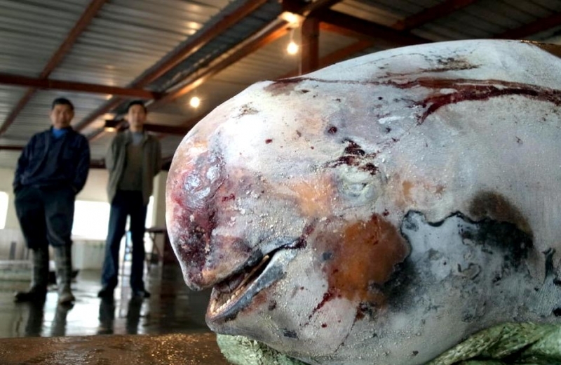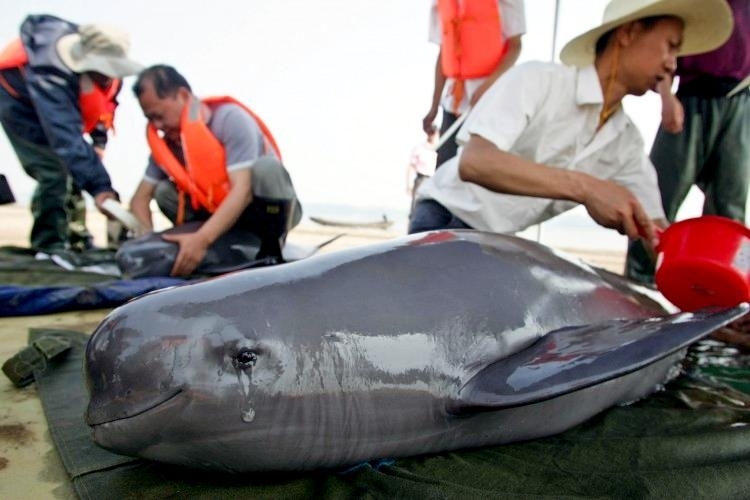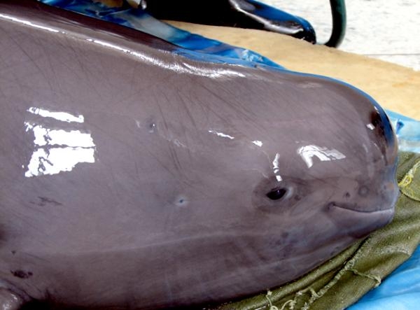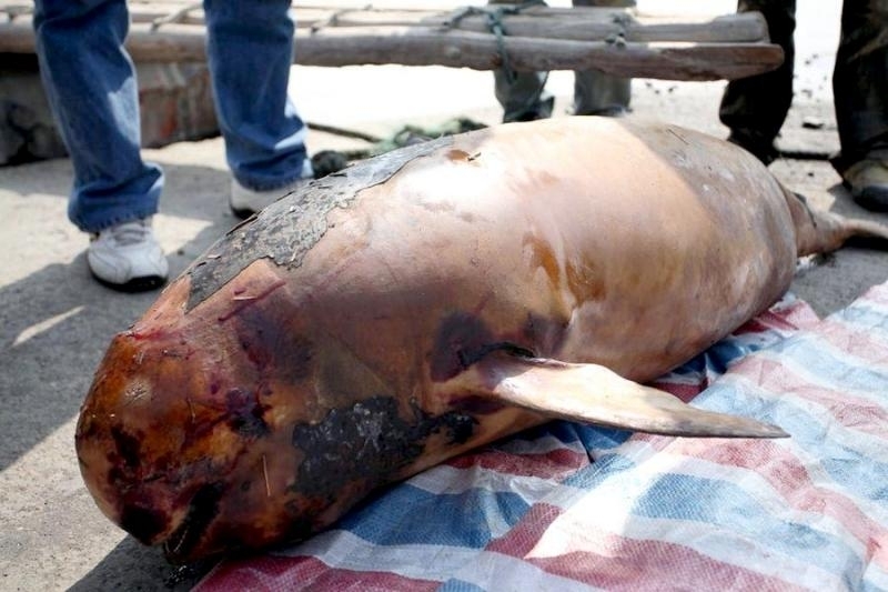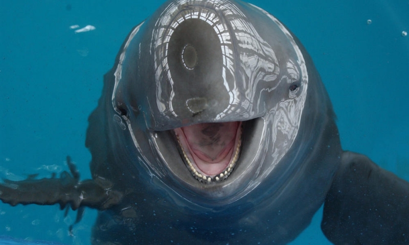 The Yangtze River Finless Porpoise is found in the coastal waters & rivers of Southeast Asia. It is concentrated in the eastern Indo-Pacific region and can be found from Pakistan to Korea, Japan, Borneo and Java. They live in both freshwater & saltwater habitats. It is found in shallow coastal waters such as the Sea of Japan as well as freshwater rivers like the Yangtze River in China. The Yangtze River Finless Porpoise is occasionally found in inland lakes which have been cut off from the ocean but are still saltwater and seem to prefer rocky promontories & strong currents. They are a small cetacean and grow to only 150-190 centimeters. It has a distinct eel-like shape due to its lack of dorsal fin and round, beak-less head. The jaw of contains 15-21 spade shaped teeth on each side of the upper and lower jaw.