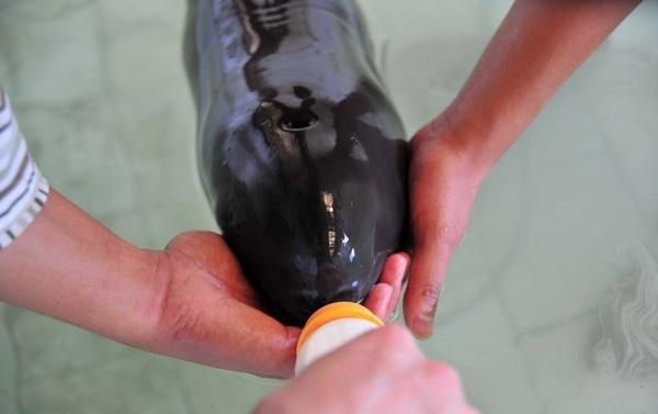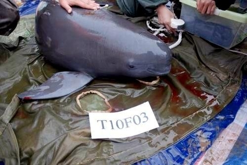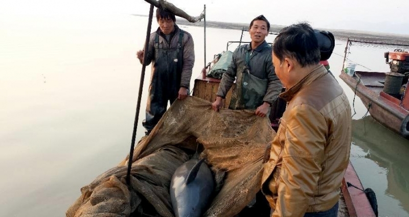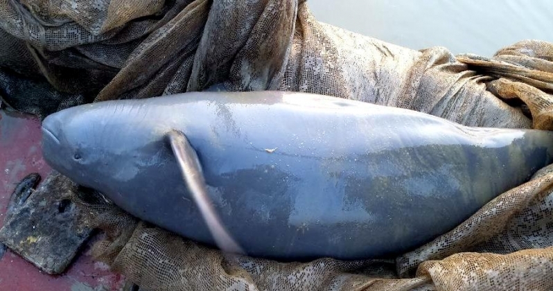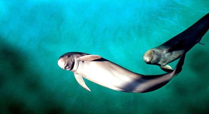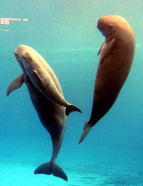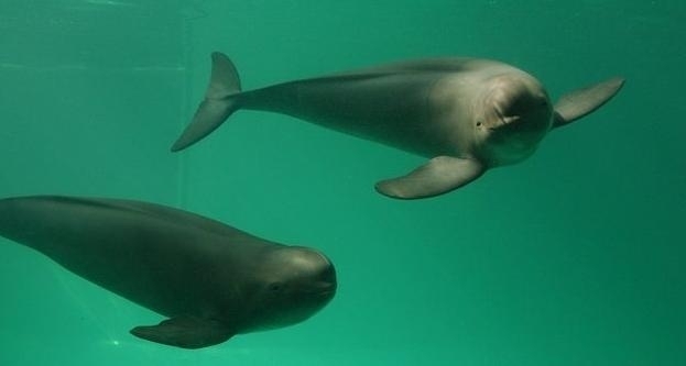 The Yangtze River Finless Porpoise reaches sexual maturity by the age of 2 years. Reproductive cycles differ among geographic groups such as those located near Japan and those near China. This porpoise is sometimes called the Black Finless Porpoise because of the common misconception that its skin is black. In reality, the upper portions are gray with touches of blue on the back & sides. The ventral parts are paler. Pale spots do however decrease with age and the skin turns black immediately after death. Further, the skin coloring differs from pale in oceanic and brackish waters, to almost black in rivers. The Yangtze River Finless Porpoise has no dorsal fin but has instead has a mid-line dorsal ridge. This ridge contains horny papillae. The breeding cycle is 1-2 years and gestation lasts between 10-11 months. Births occur between February & August and there is usually 1 young per birth. Newborns are around 25 kilograms, weaned between September & June and have been found to live up to 23 years.